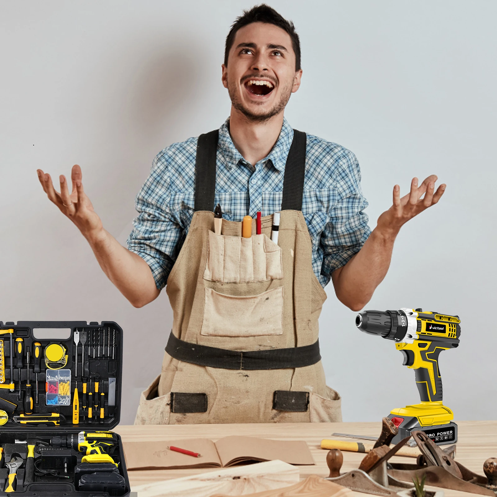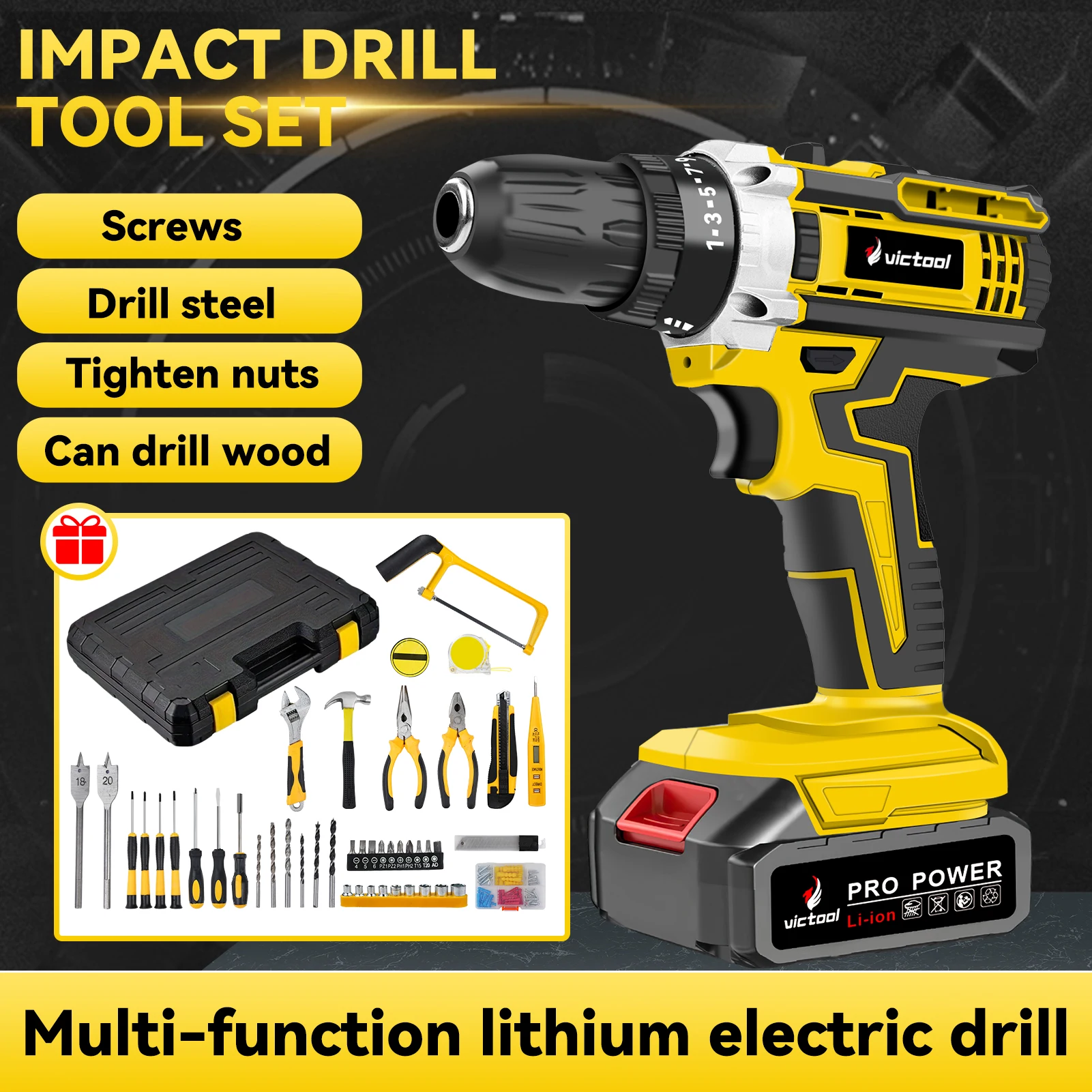 Tool name: 1. Short handle carrot head screwdriver cross/slotted 2. 6*100 screwdriver cross/slotted 3. Ratchet screwdriver handle 4. 3m tape measure 5. Precision screwdriver * 5PCS 6. Woodworking clamp * 4PCS 7. Parts box * 60PCS 8. 8-inch level 9. 3/8 ratchet wrench 10. 3/8 Mars 11. 3/8 extension rod 12. Open-end wrench 6PCS 13. 25mm batch head 20PCS 14. 7-inch wire stripper 15. Claw hammer 16. Adjustable wrench 17. Water pump pliers 18. 6-inch wire cutters 19. 6-inch needle-nose pliers 20. Utility knife 21. Woodworking saw 22. 50mm batch head * 10PCS 23. Electrical tape 24. Hexagon socket * 9PCS 25. 3/8 adapter 26. 1/4 sleeve * 10PCS 27. 3/8 sleeve * 12PCS