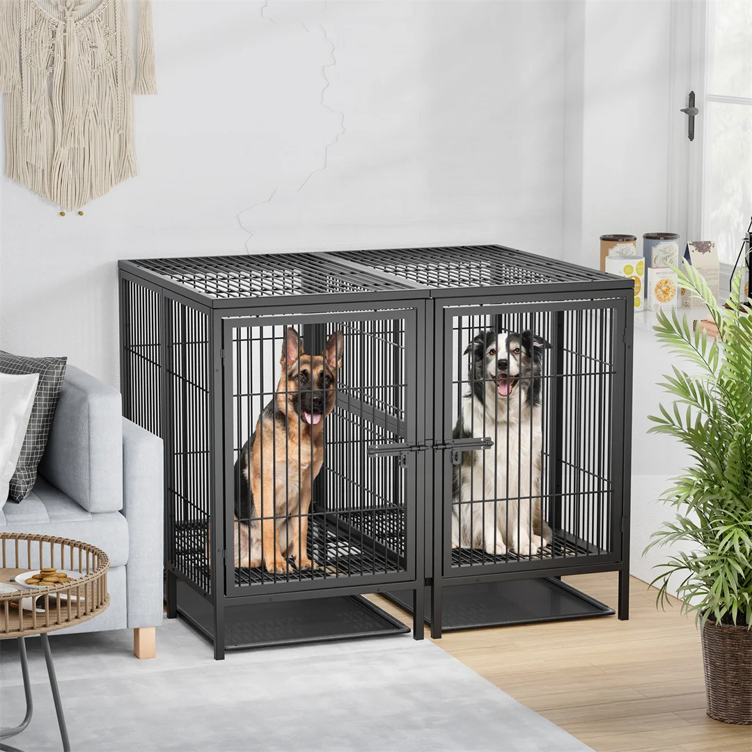 Large Heavy-Duty Dog Cage for 2 Dogs Chew Proof Metal Kennel w/ Plastic Tray