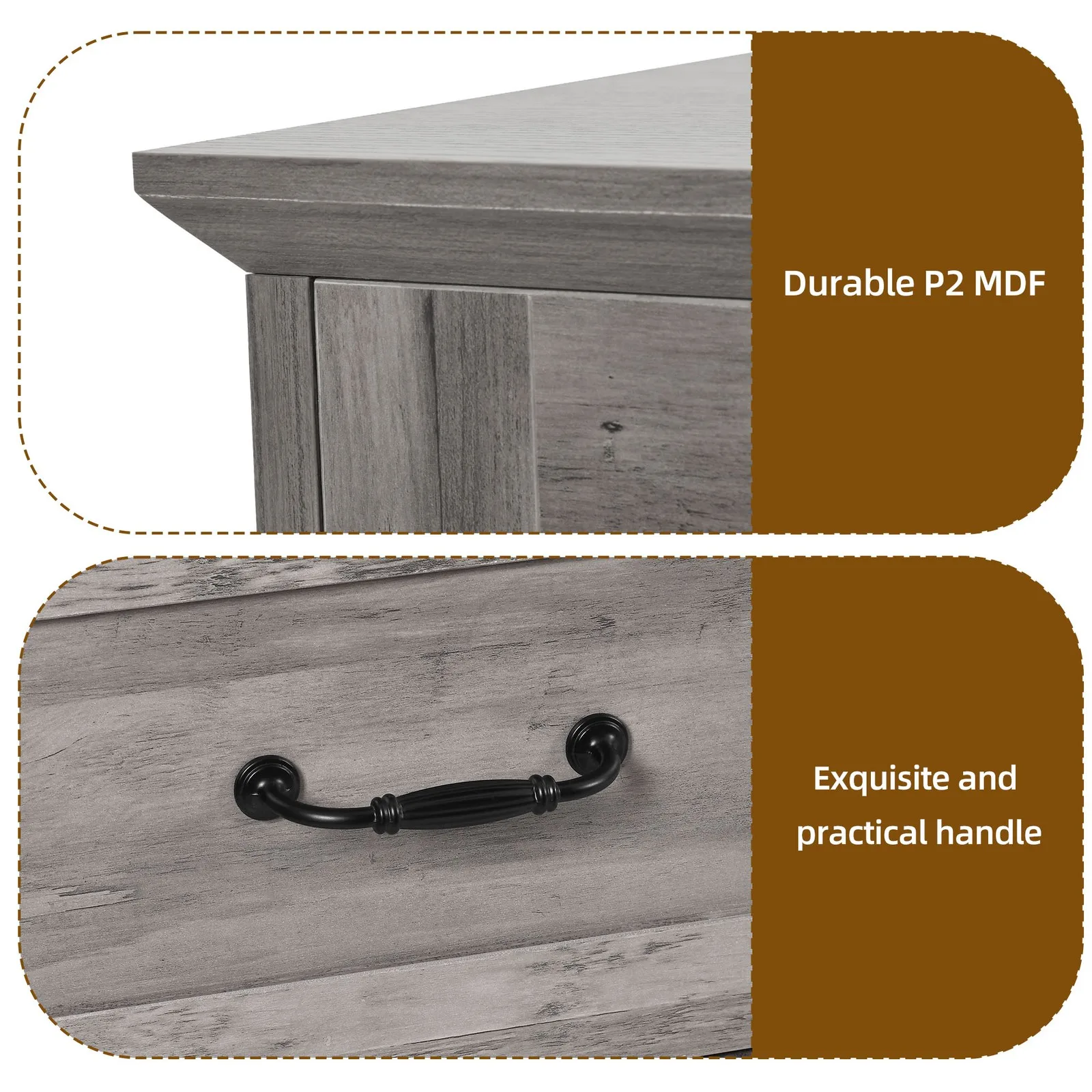 ✨ Dual-Tone Elegance: Rich wood-look top + sleek grey body with high-end handles; blends farmhouse warmth and modern minimalism for versatile decor appeal.