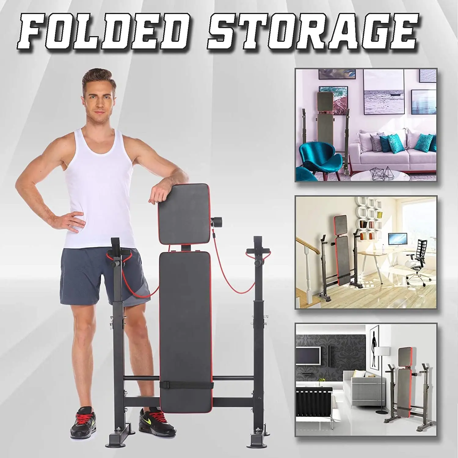 600lbs 6 in 1 Weight Bench Set with Squat Rack Adjustable Workout Bench with Leg Developer Preacher Curl Rack Fitness Strength T