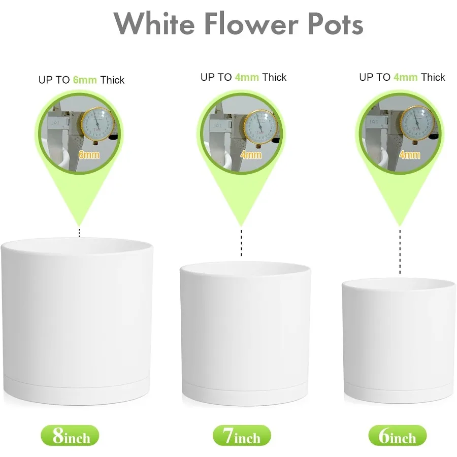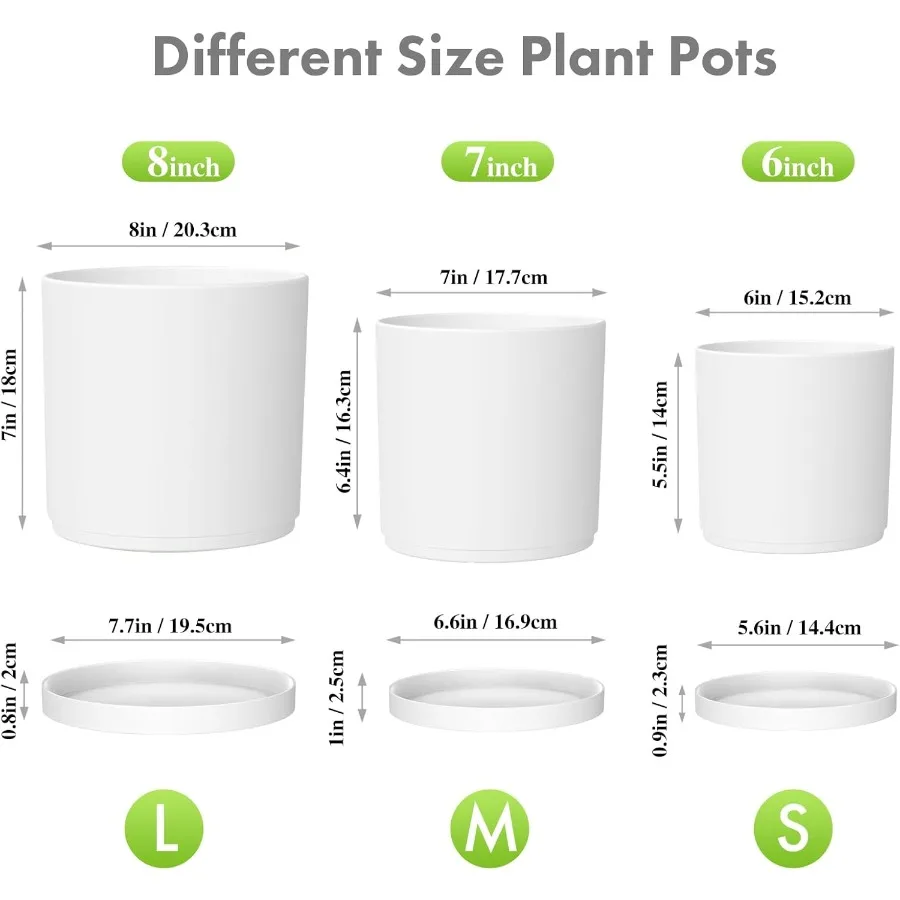 8 7 6 inch Plant Pots Set of 3 Cylinder Flower Pots for Outdoor Indoor Plants Drative Plastic Planters with Drainage Holes and