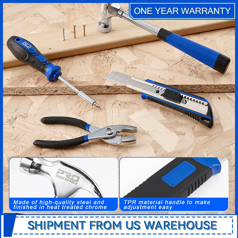 93-Piece Portable Tool Kit Home Repair Tool Set with Toolbox Organizer Small Starter Toolbox Kit for Students By Prostormer