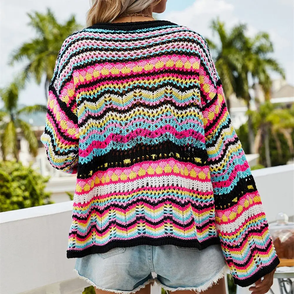 Autumn Rainbow Sweater Women Harajuku Jumper Striped Casual Long Sleeved Pullovers Korean Vintage Knitwear Y2K Sweatshirt