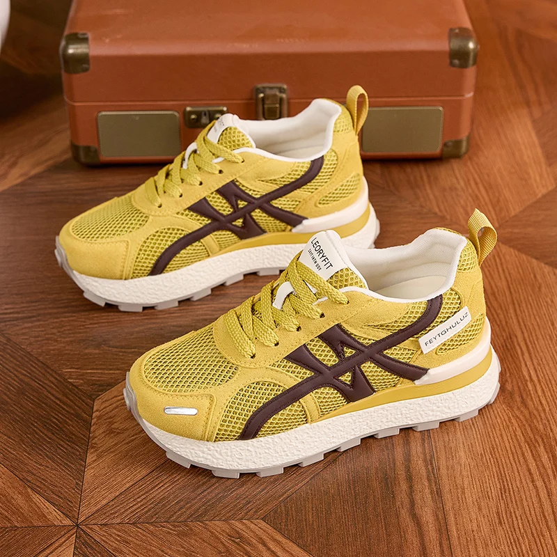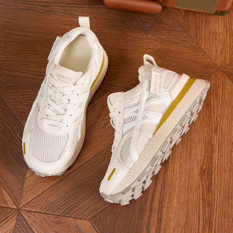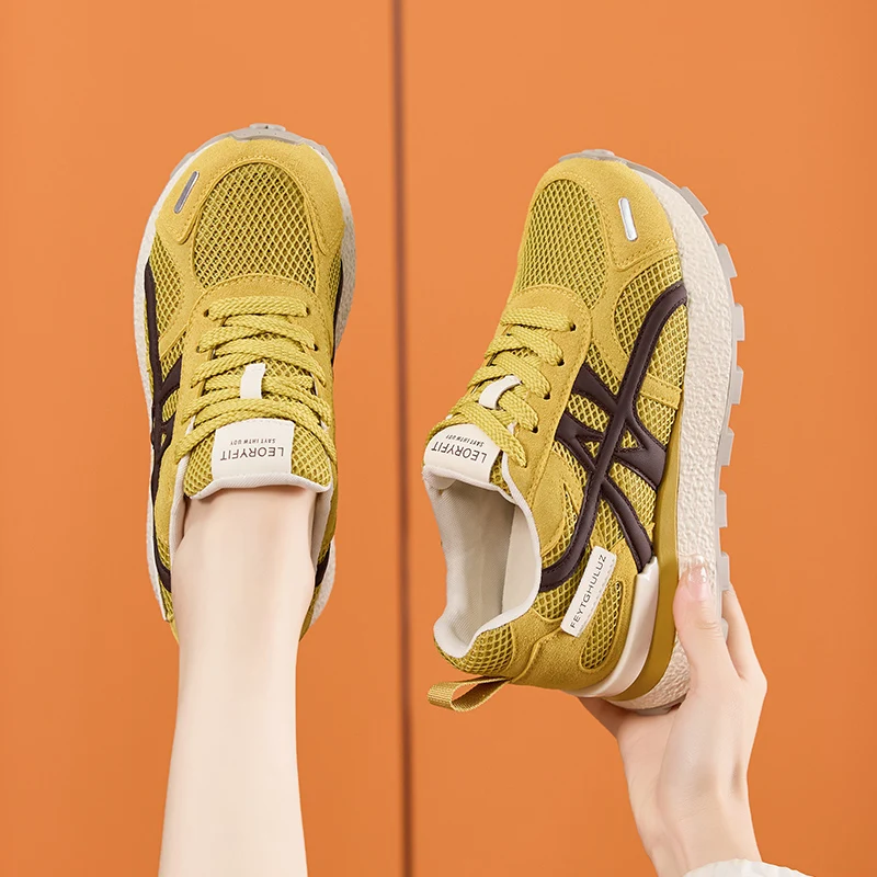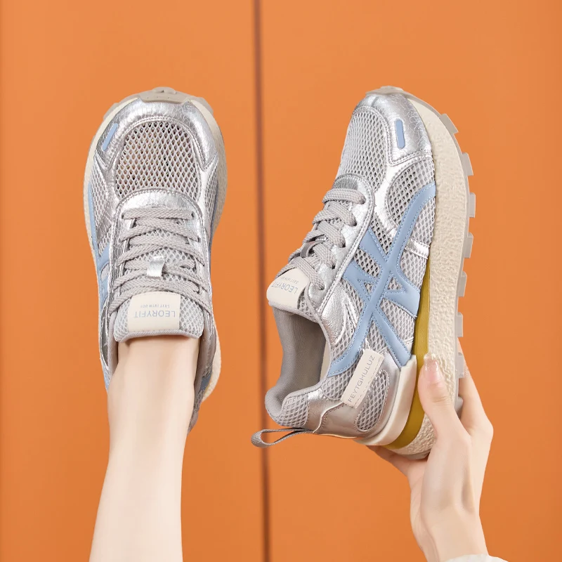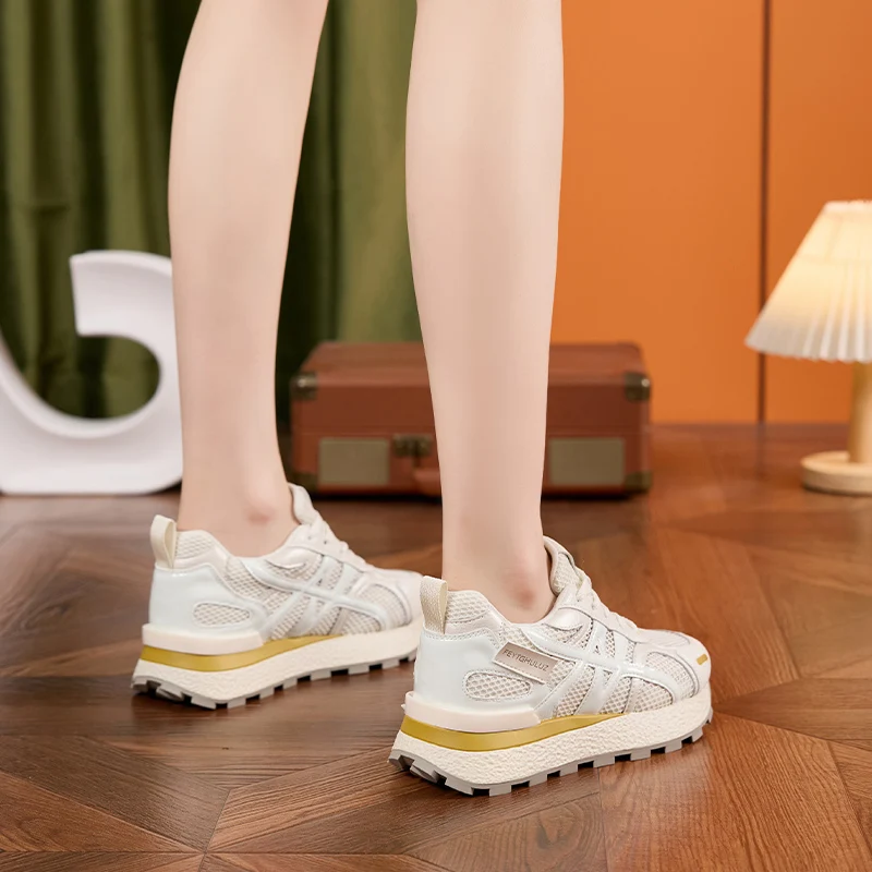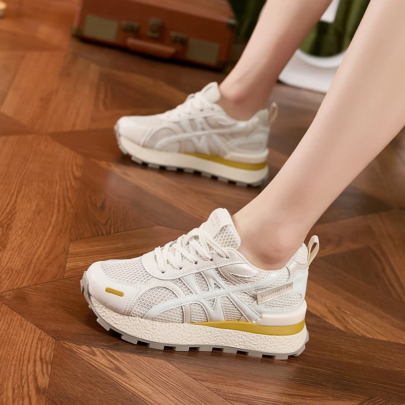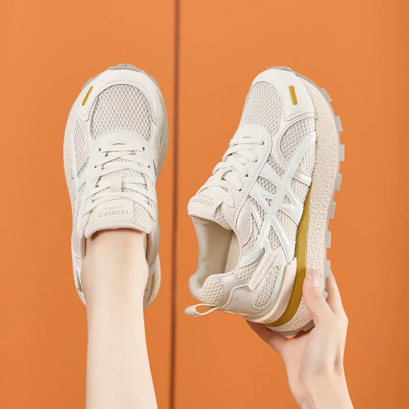 AUTUSPIN Summer Sports Shoes Women Retro Breathable Mesh Sneakers Outdoor Casual Leather Footwear Walking Hiking Female Shoes