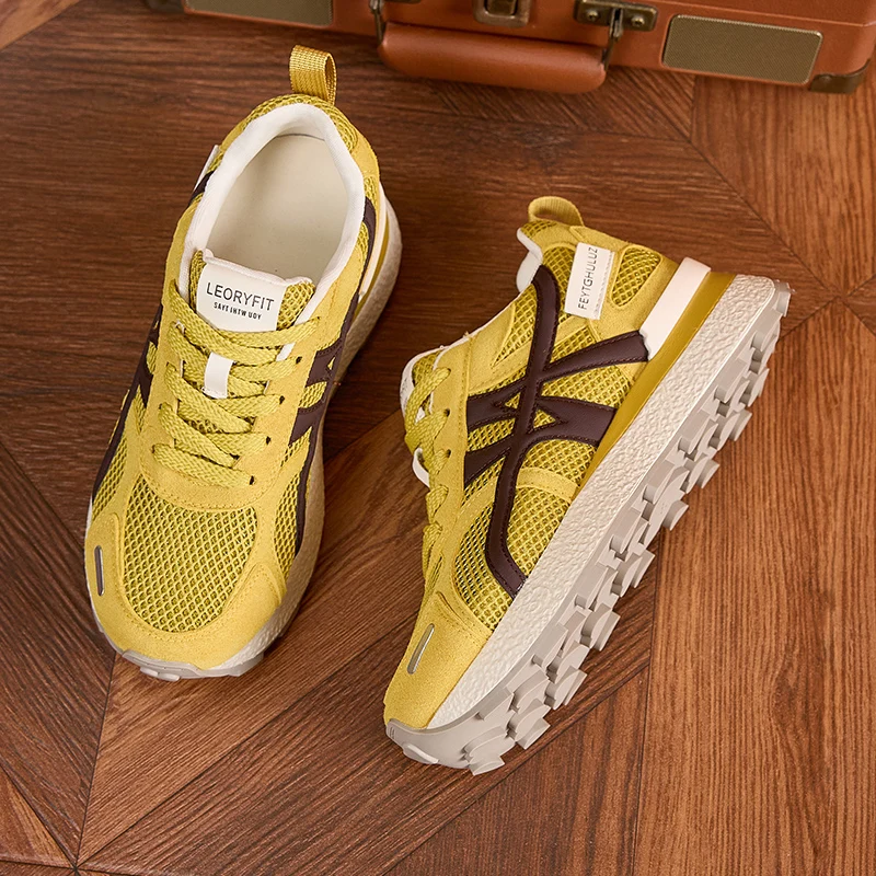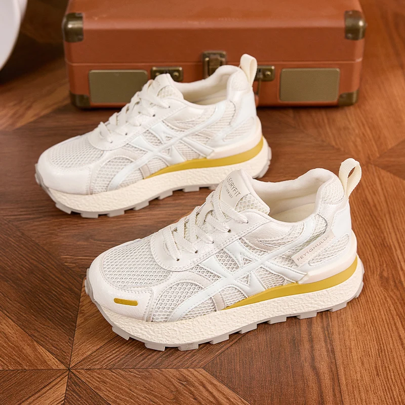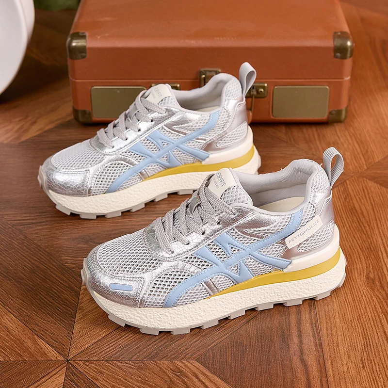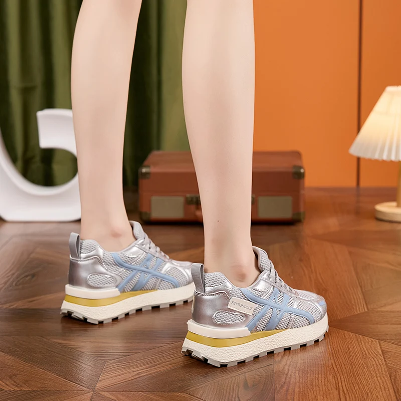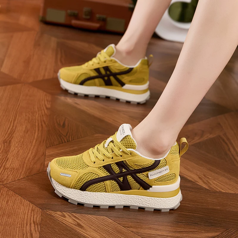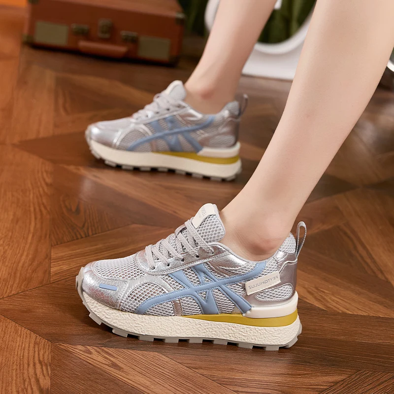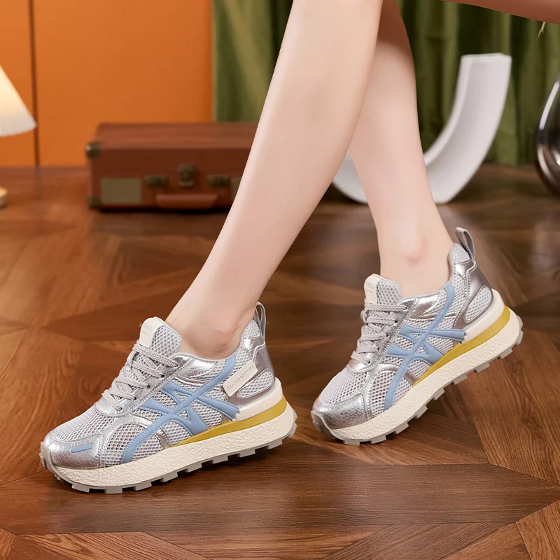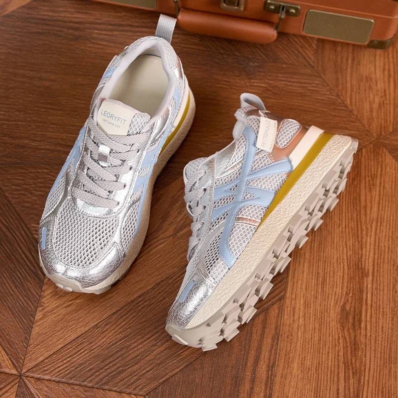 AUTUSPIN Summer Sports Shoes Women Retro Breathable Mesh Sneakers Outdoor Casual Leather Footwear Walking Hiking Female Shoes