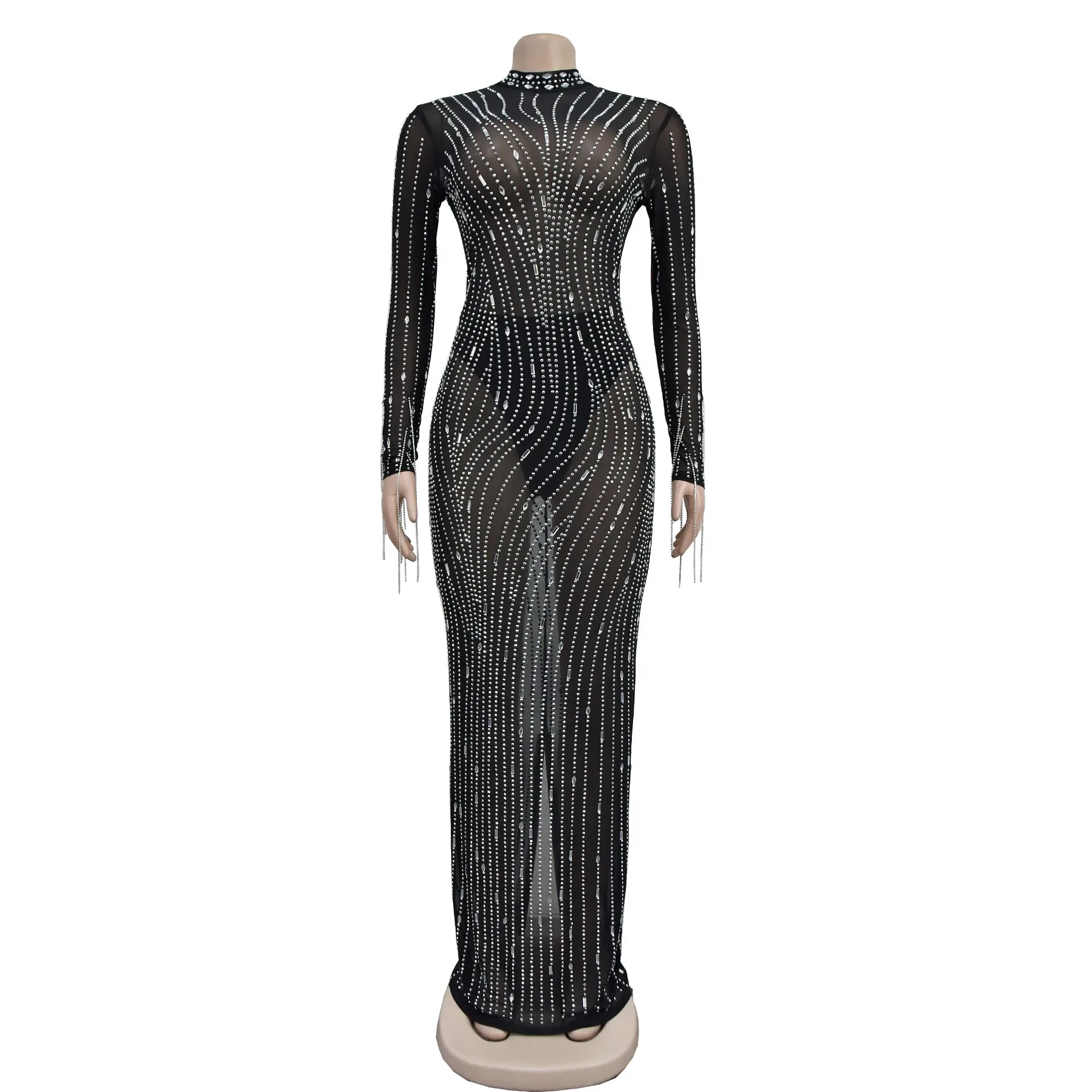 Be the first to review “CM.YAYA 2024 Women Long Sleeve Mesh See Through Diamonds Hot Rhinestones Bodycon Dress Woman Maxi Long Evening Birthday Dresses” Cancel reply