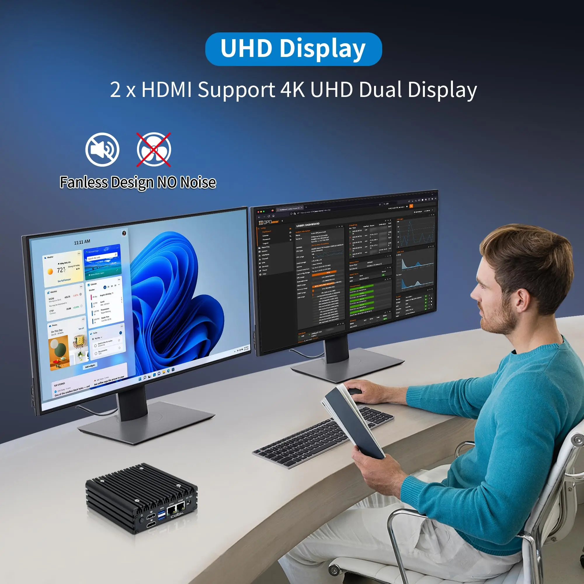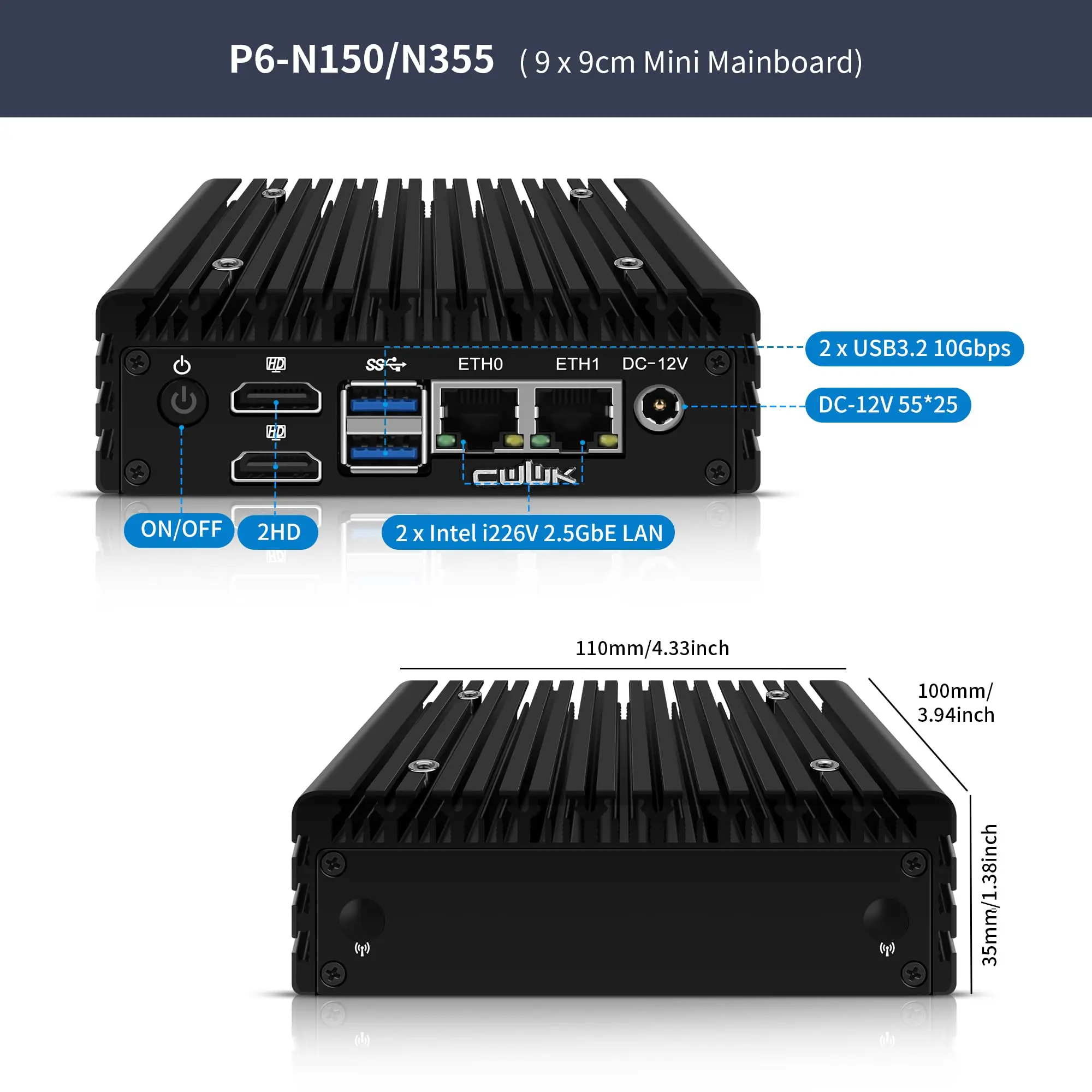 Ultra-small Size and Fanless Design: With the ultra-small size, it is perfect for environments with limited space, such as home labs, office desktops, or small server racks. The fanless design can offer a quiet operating experience, particularly important for home servers or virtualized environments running overnight