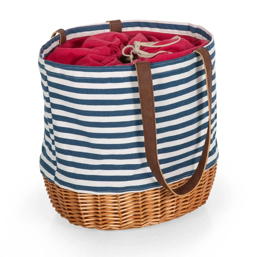 Is it a beach bag? Yes. Is it a picnic basket? Also yes. Is it a tote bag? Y-e-s. Will it be there for you because it’s been there before? YES. You may find yourself asking more questions, but let me stop you there, because the answer is, “Yes. ” Somewhere between a durable picnic tote and a stylish beach bag, the Coronado Canvas and Willow Basket Tote is the perfect companion wherever you’re headed. This tote is three+ bags in one, with a willow wicker bottom, canvas body (in lots of chic colors and patterns), and fully-lined interior. This tote bag for women makes a statement (and fits a sizable wine and cheese picnic) while delivering handy canvas tote convenience everywhere from the grocery to the beach.
