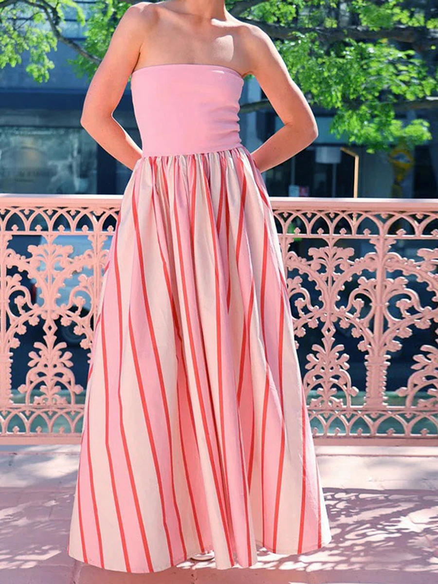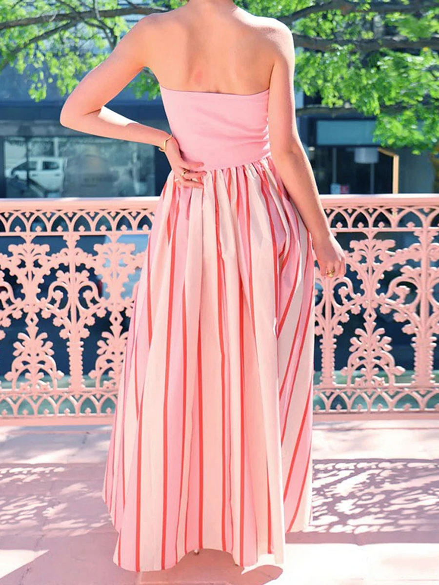 Women Long Dress Stripe Patchwork Tube Dress Summer Fashion Backless Casual Strapless Dress