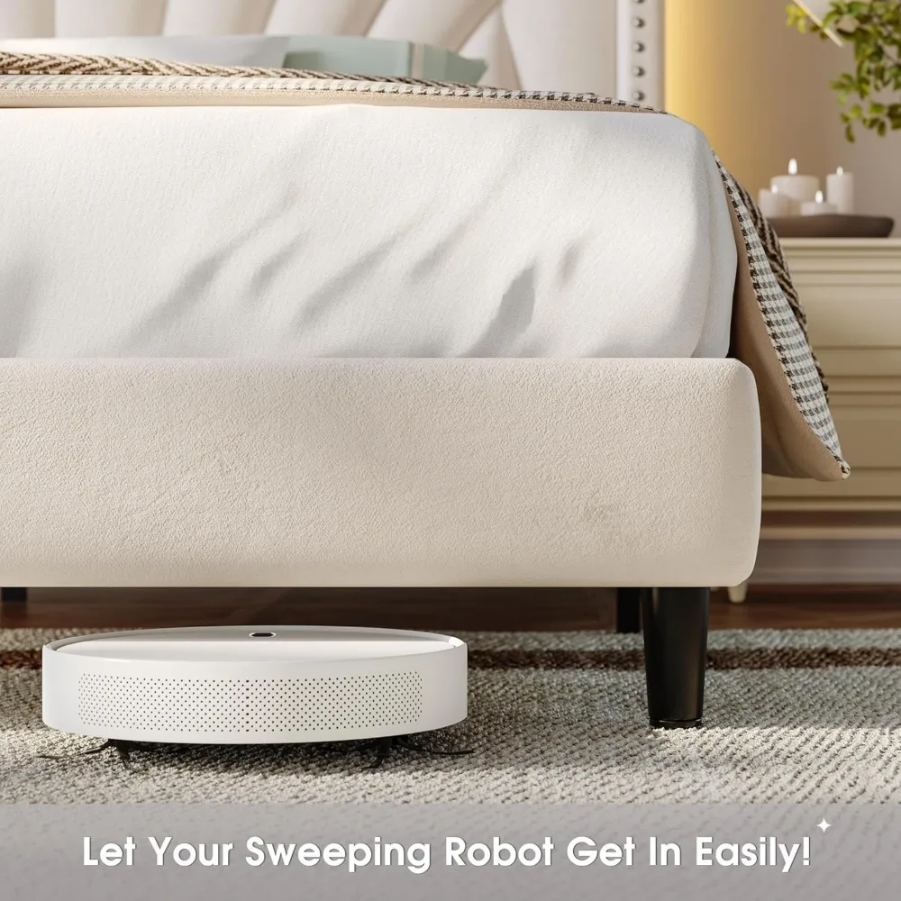 【King Bed Frame Tall with LED Lights】The LED lights come in a variety of fun and vibrant colors, bright enough to create a pleasant ambiance around the bed frame. The built-in LED lighting on the king size bed frame with headboard also serves as a practical night light or reading light.