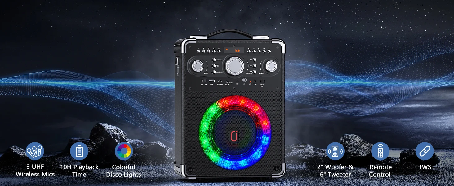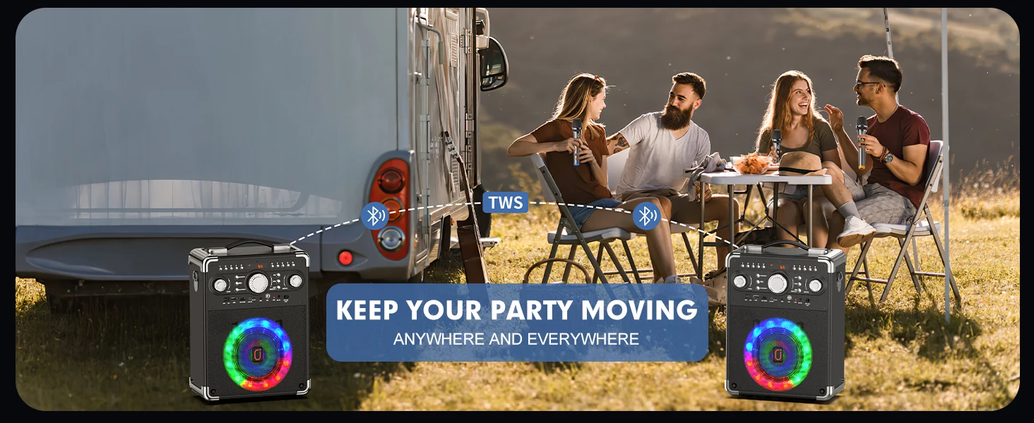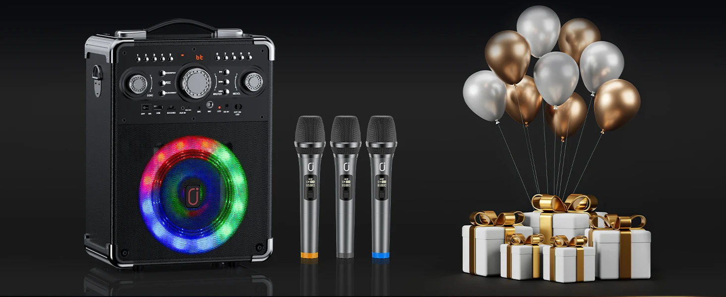 FanFun Karaoke Speaker with 3 Wireless Microphone,