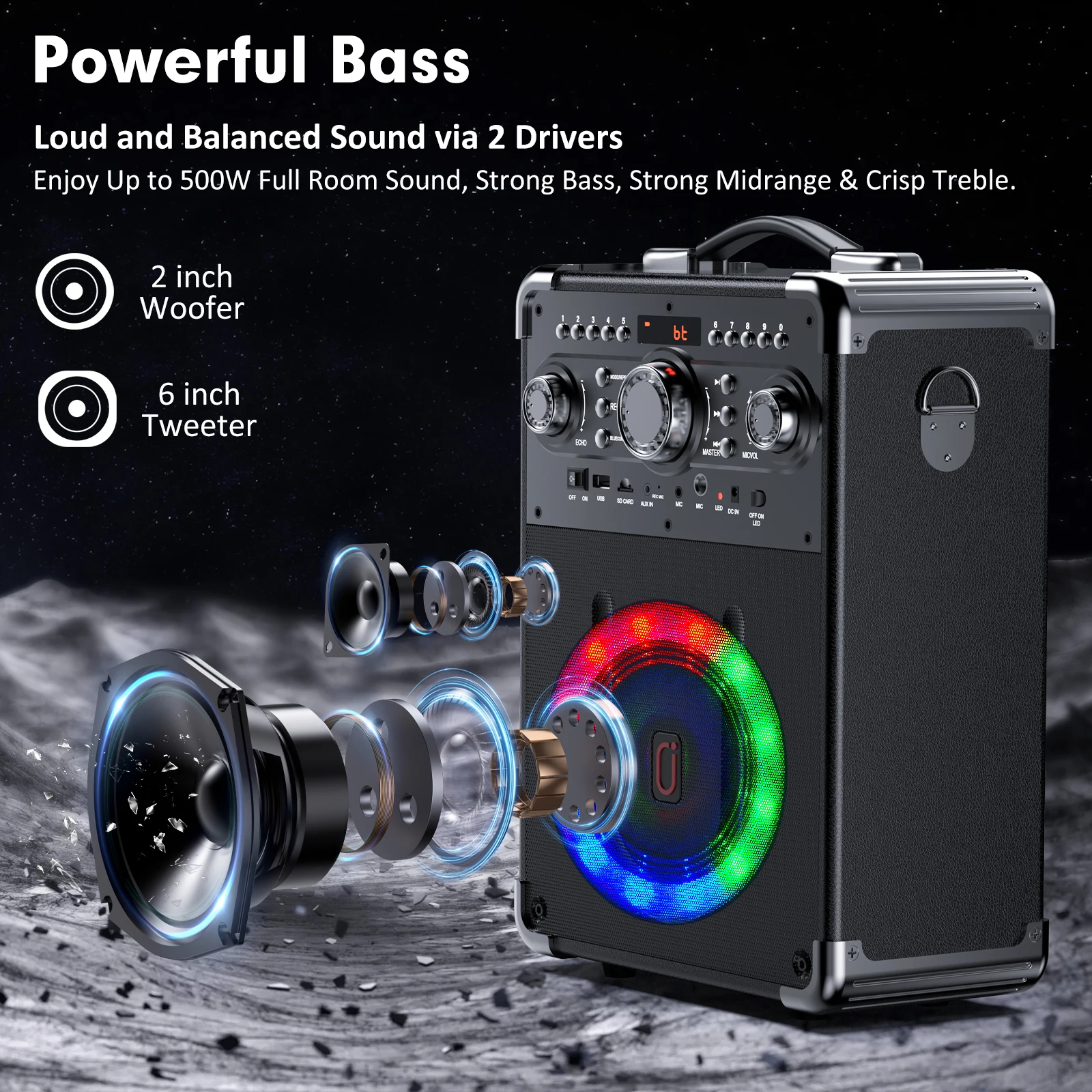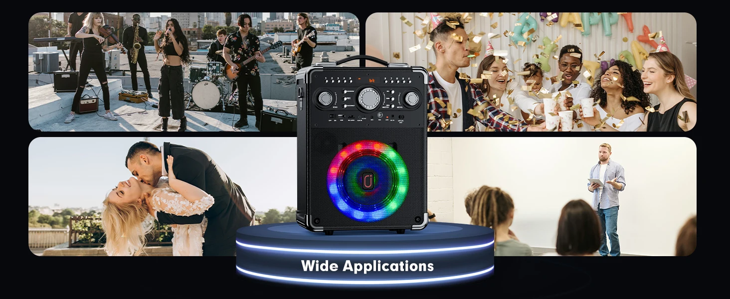 Bluetooth Speaker with LED Light, Portable Outdoor Party Speaker