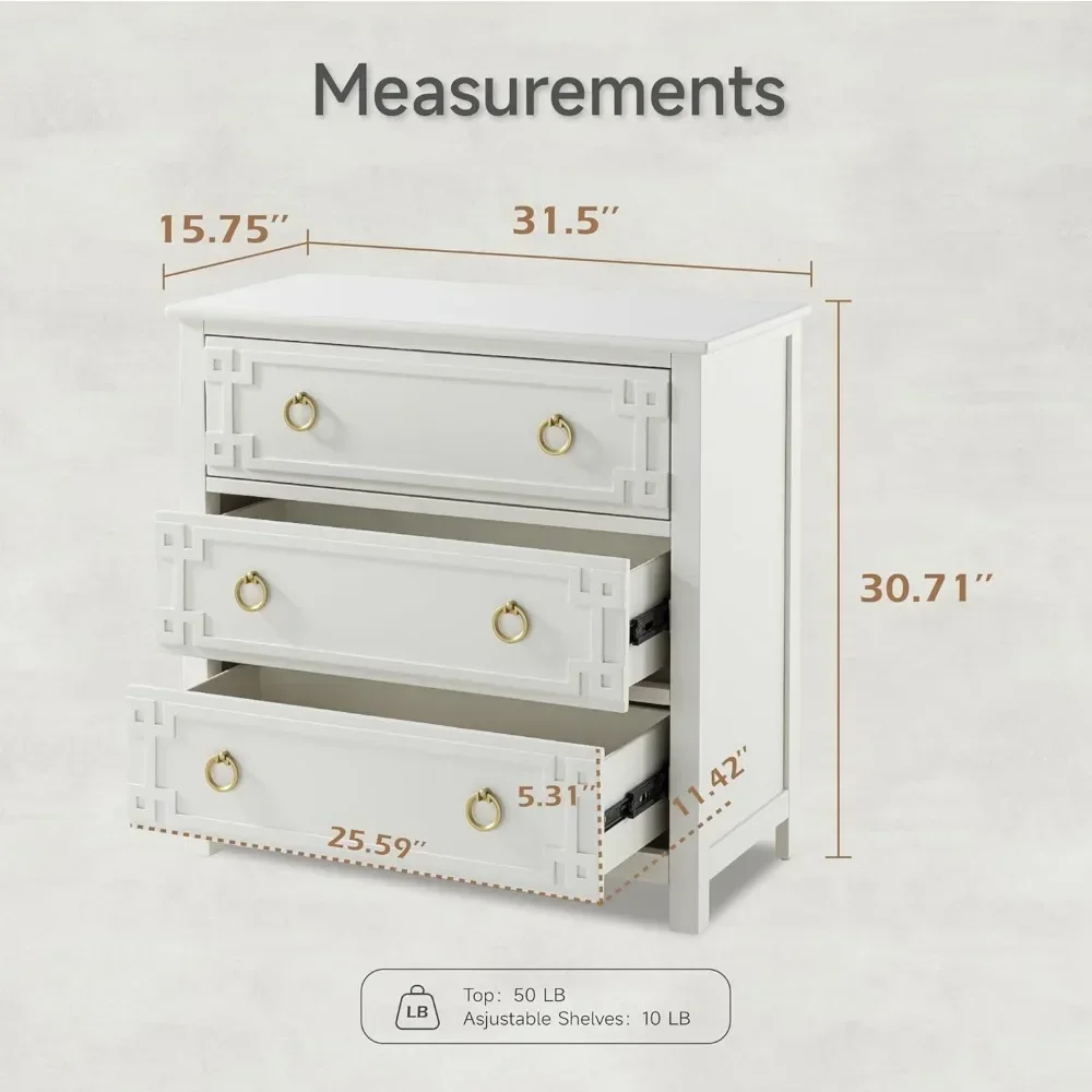 【Measurements】: Overall dimensions 31.5″L x15.75″D x30.71″H; Drawer interior dimensions 25.59″L x11.42″D x5.31″H. Support up to 50 lbs.