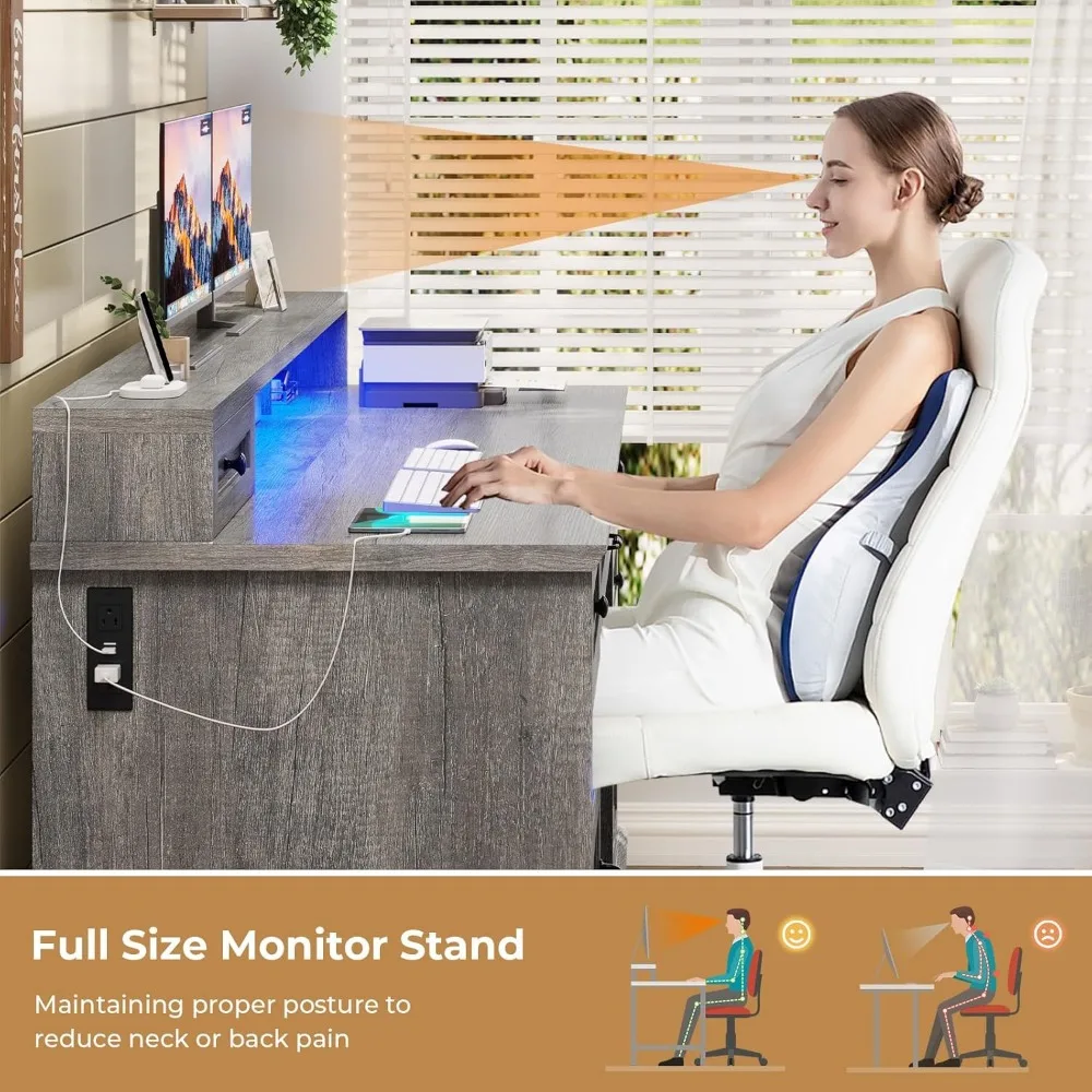 【Equipped with Power Strip】A power strip is built into the left side of the executive desk, including 2 standard outlets and 2 USB ports to power your computer, mobile phone or other electronic products. The convenient charging station makes charging electronic devices a breeze.
