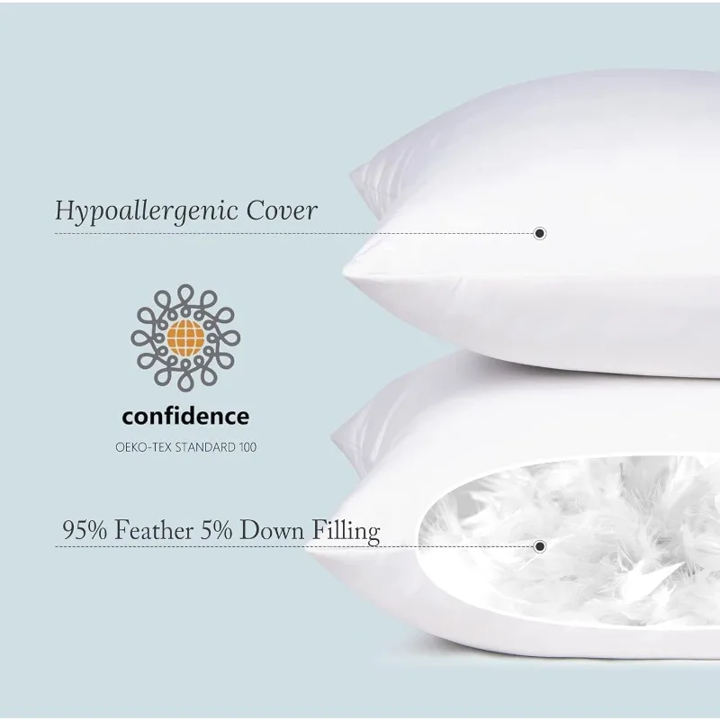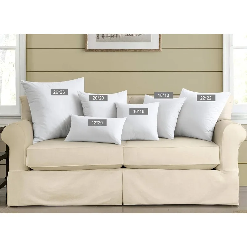 Feather Throw Pillow Inserts 22 x 22 (Pack of 2, White), Big Throw Pillows for Floor, Couch, Bed, Machine Washable