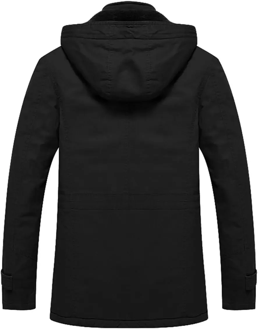 Fleece Lined Jacket Cotton Military Jackets Men’s Winter New Hooded Parkas Overcoat Parkas New Men Thick Work Warm Cargo Coats