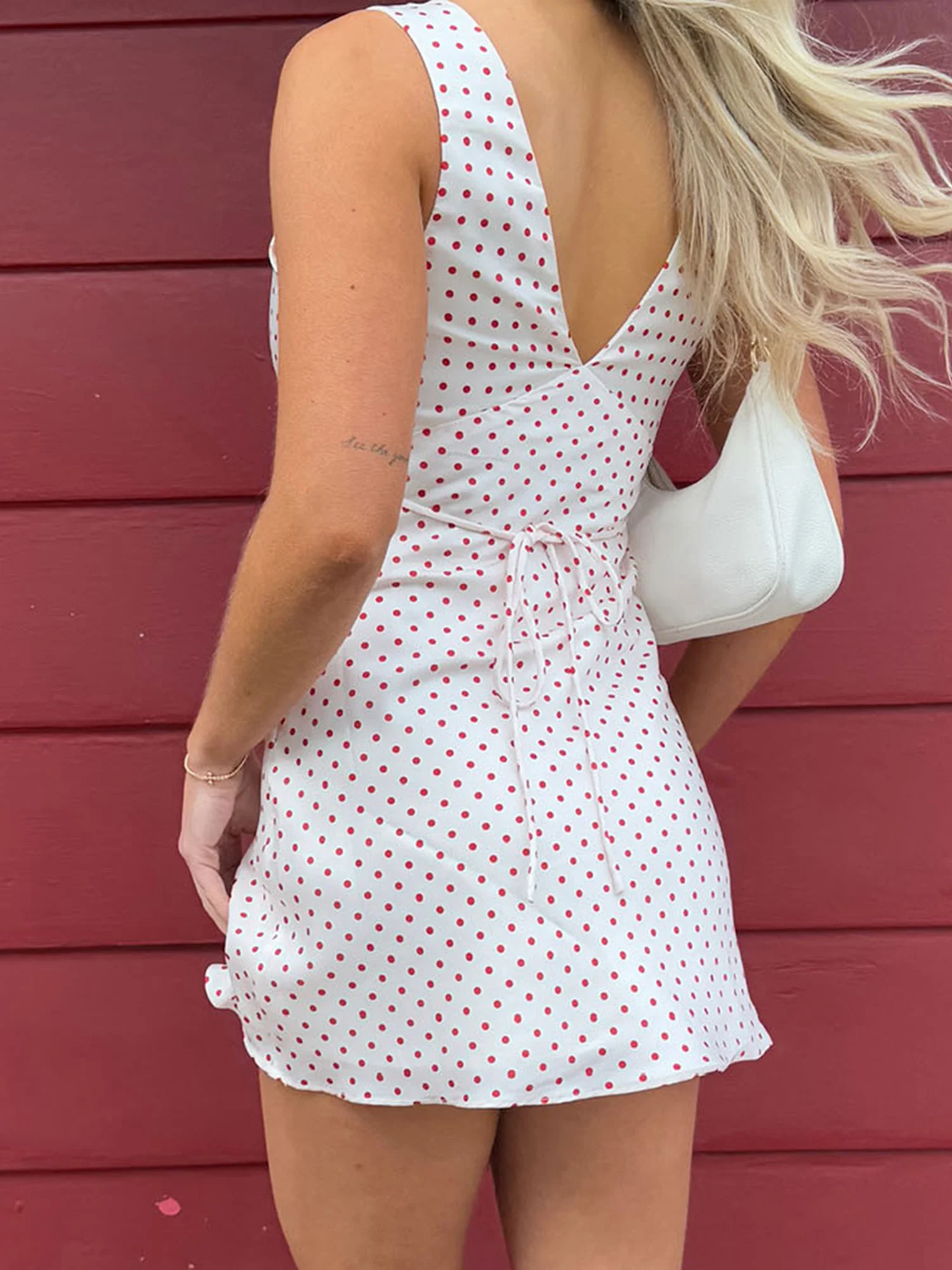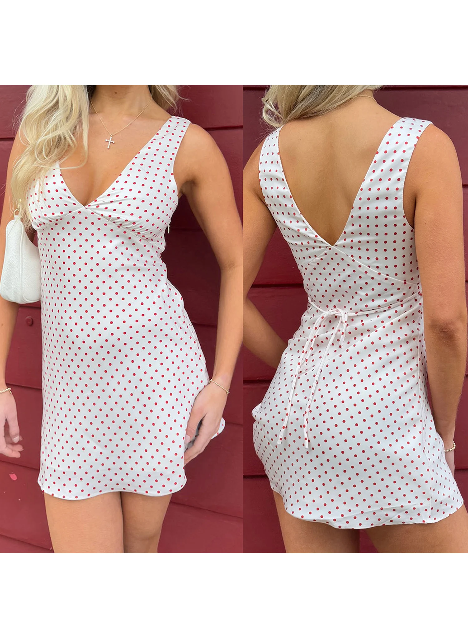 Floral Print Sleeveless V Neck Mini Dress with Tie Waist and Backless Design Women s A-line Summer Streetwear Dress