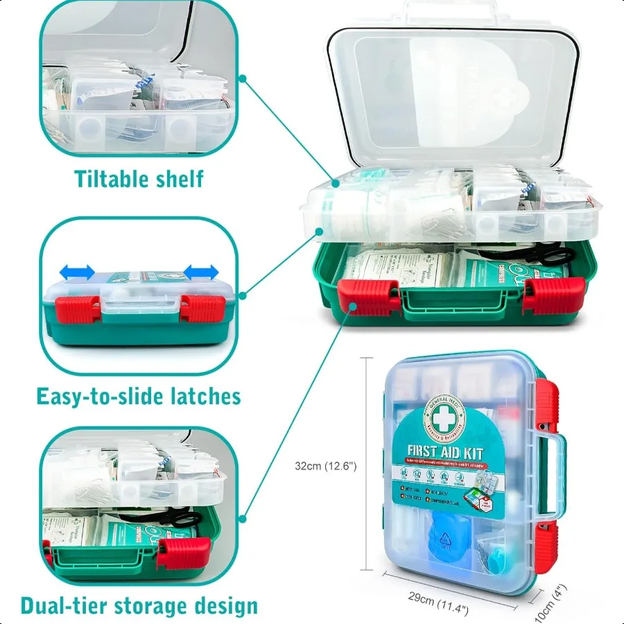 General Medi 420 Pieces Profional First Aid Kit HardCase First Aid Box Contains Premium Medical plies for Travel Home Office Ve