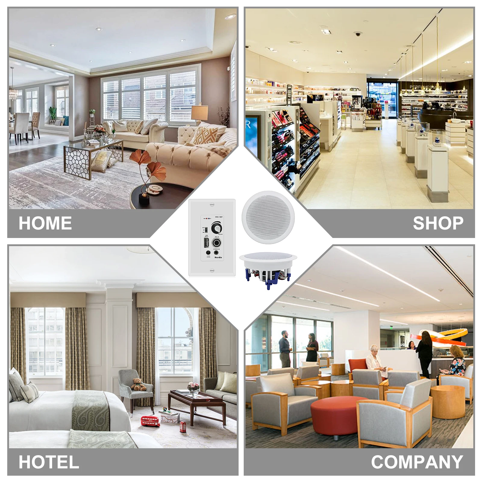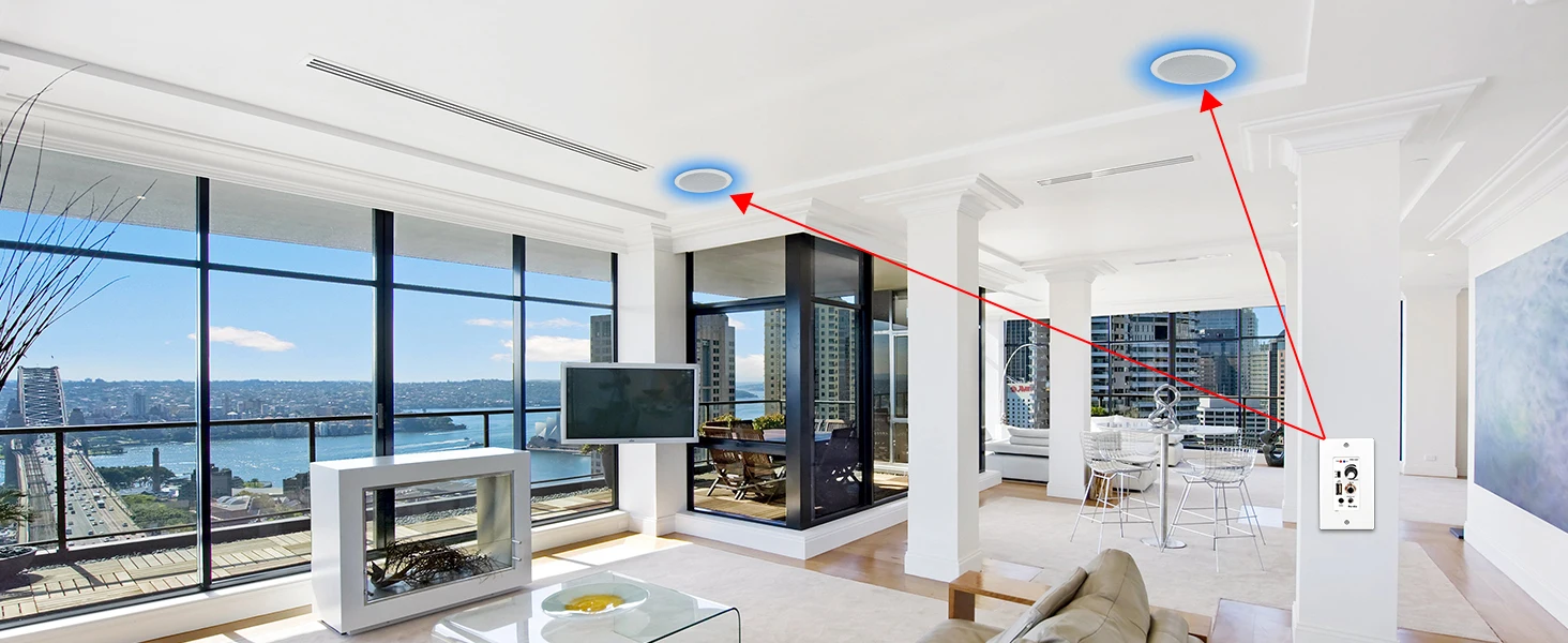 EASY TO INSTALL: Install this home audio system on any wall in your home or office. Wall Mounted Amplifiers are available in common standard wall plate sizes. Connect our HCS-528 ceiling speakers for a versatile sound experience with easy access.
