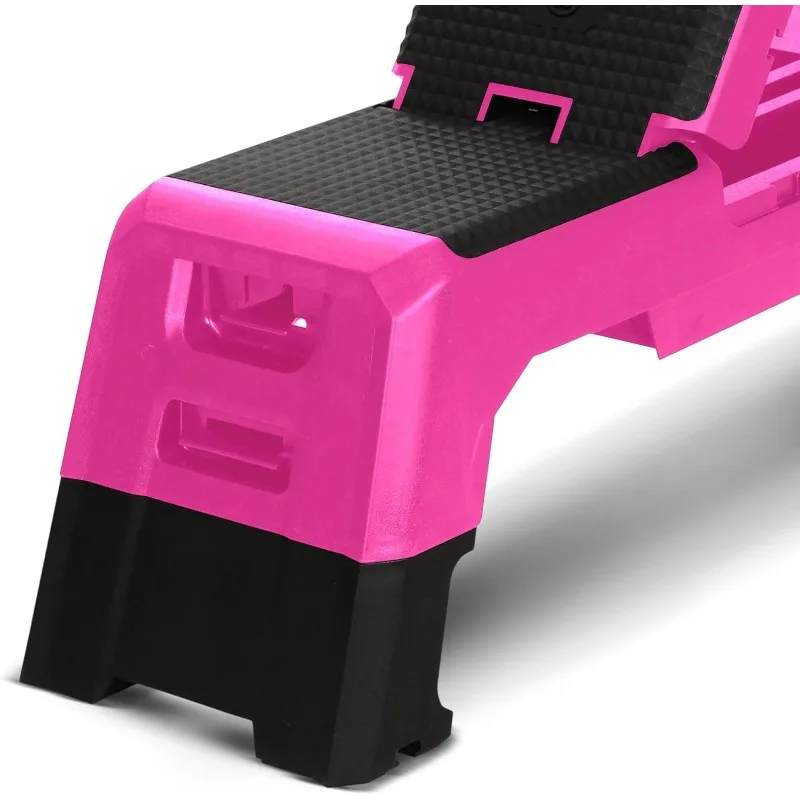 Versatile Deck: Revolutionize your fitness routine with a multifunctional aerobic deck that can be used as a weight bench, step, plyometric, or ramp, with versatile exercise possibilities