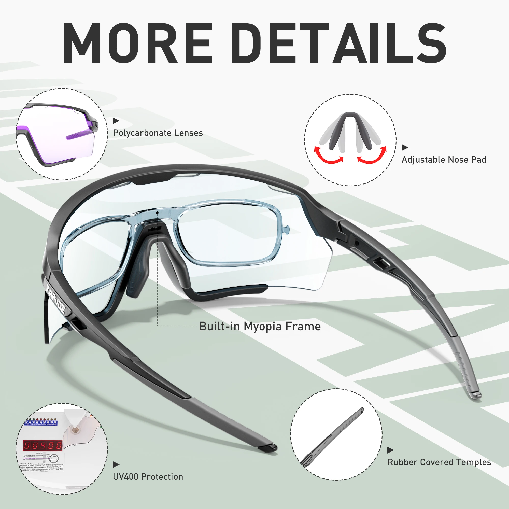 🚴【High-quality TR90 Frames】These frames are made from durable TR90 material, which is highly impact and bending-resistant and will not crack or break easily. Due to the flexibility and memory properties of the frame, KAPVOE cycling sunglasses can adapt to different face shapes and provide a better fit. Include a myopia frame in the sports glasses package, convenient for you to configure glasses.