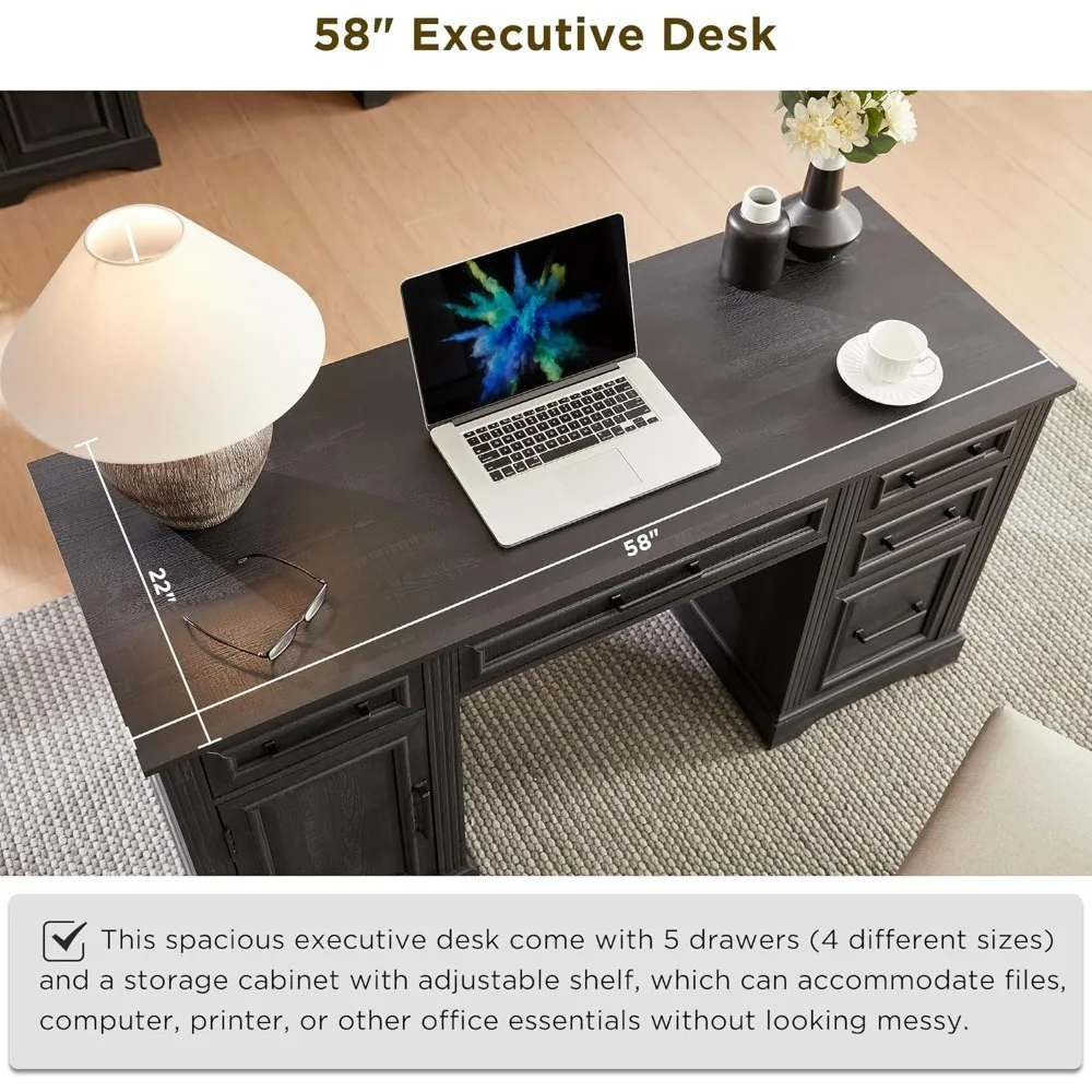 Home Office Desk: Elevate your home office with this stylish and spacious Executive Desk, perfect for professionals and work-from-home individuals. Featuring an widen desktop and 5 drawers for organization, this Computer Desk is ideal for those in need of a functional and practical workspace solutio.