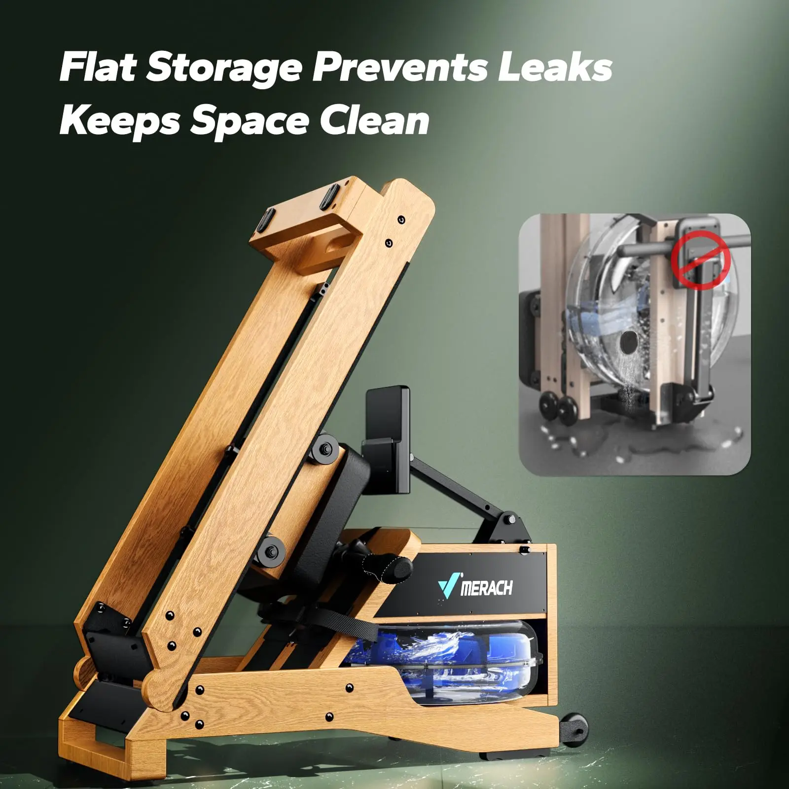 MERACH Water Rowing Machines for Home, Wood Rower Machine with 12 Enhanced Resistance Blades, Upgraded Handle, Adjustable Footpad, Dedicated Monitor & Bluetooth App[FSC Certified Red OAK Wood] This water rowing machine combines natural beauty with sustainability, crafted from FSC-certified pure red OAK wood. It supports up to 350 lbs and fits users up to 6 feet 8 inches, making it ideal for the whole family. A perfect addition to your home gym or indoor rowing machine setup.[Premium Solid Wood] Crafted from durable solid wood, this water rowing machine combines natural elegance with lasting strength. Supporting up to 350 lbs and accommodating users up to 6ft8in, it’s perfect for the whole family and an ideal addition to your home gym or indoor rowing setup.[Immersive Rowing Experience] With 12 blades increasing resistance by 45%, this rower machine offers smoother, quieter, and more stable resistance. Each blade ensures consistent contact with water, providing a realistic and immersive rowing experience.[Easy Storage] Fold or store upright in seconds to save space. This space-saving feature adapts to your home layout, while the smooth wood finish ensures it blends perfectly with your decor.[Ergonomic Design] The MERACH Water Rowing Machine features an increased rail height, making it more comfortable for taller users. The upgraded leather handle and foot straps prevent blisters and injuries, ensuring a safer and more enjoyable workout.[Full-Body Workout] Rowing activates 90% of your muscle groups, delivering an effective workout for all fitness levels. Strengthen your legs, core, back, and arms with every stroke. The 15L water tank allows easy resistance adjustment to match your preferred intensity.[Real-Time Tracking] The LCD-backlit display tracks key metrics such as time, distance, calories, and strokes. The built-in Bluetooth enhances your rowing machine experience with interactive features, keeping you motivated during every row.[Customer Care] Set up in just 15 minutes, with 24/7 customer support for any questions. Enjoy a hassle-free experience with this rower machine for home use.