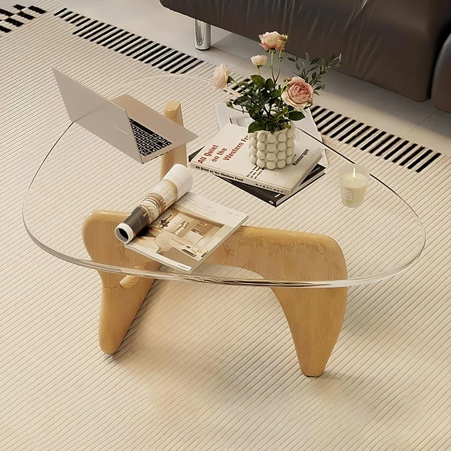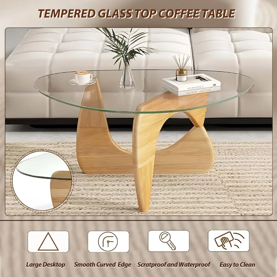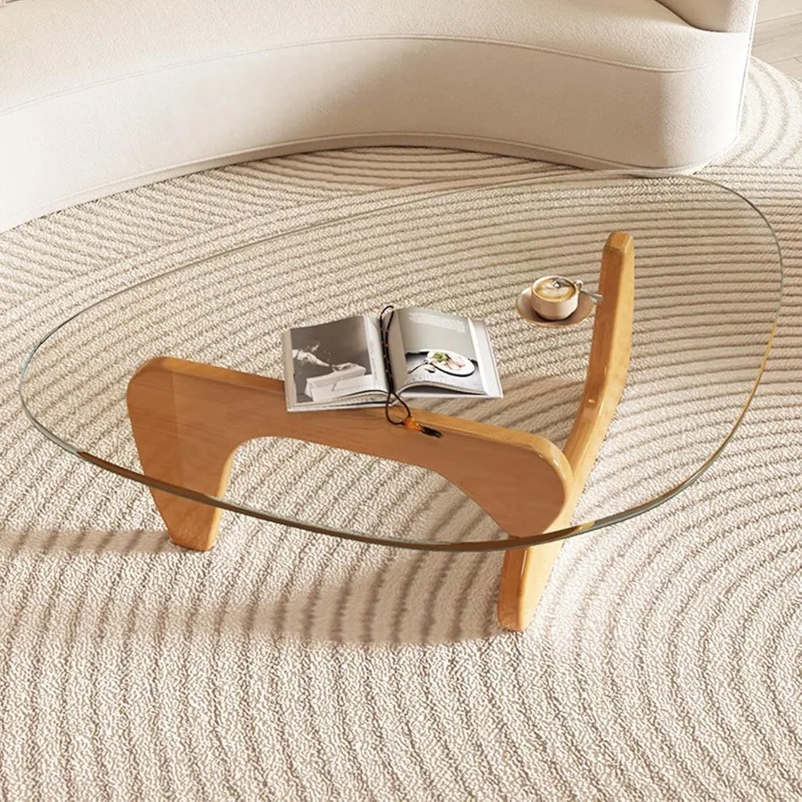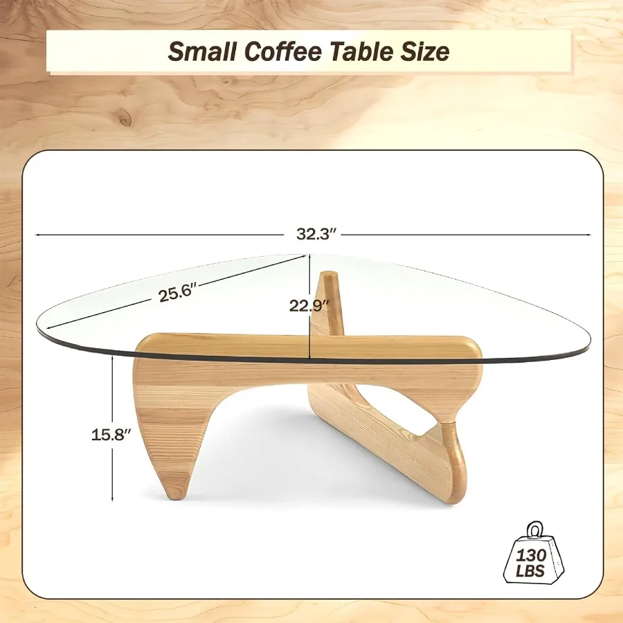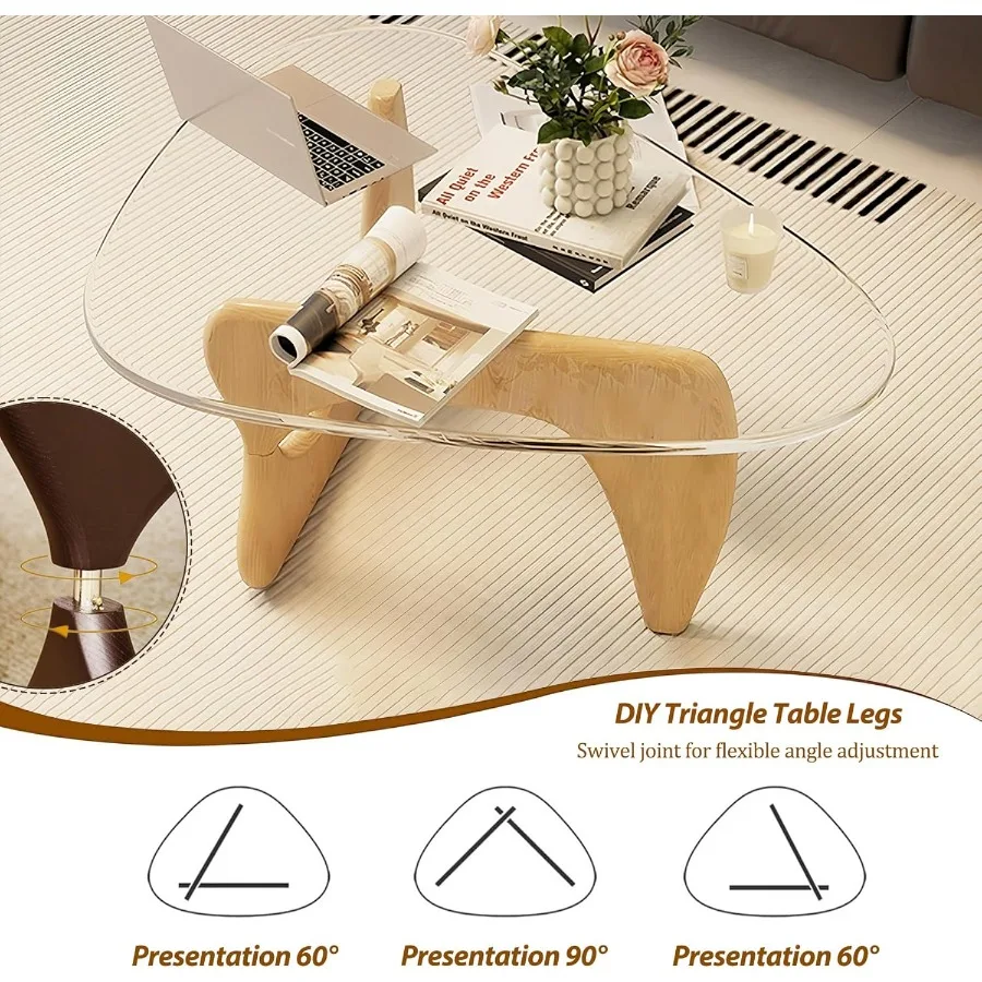 MidCentury Modern Coffee Table Triangle Glass Top tural Wood Base Triangle Coffee Table for Living Room Patio Office Abstract E