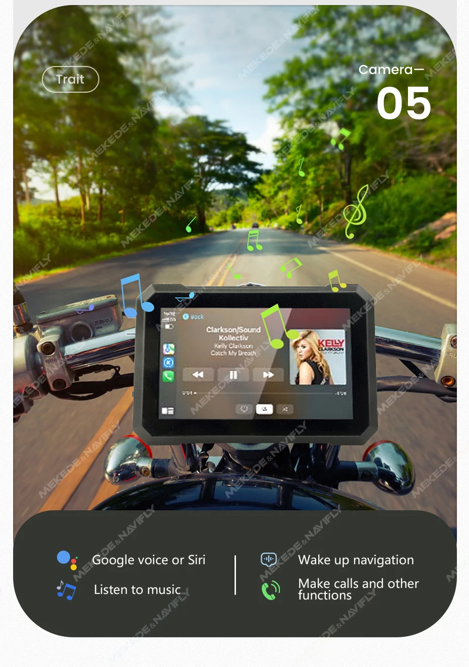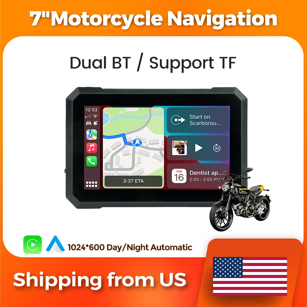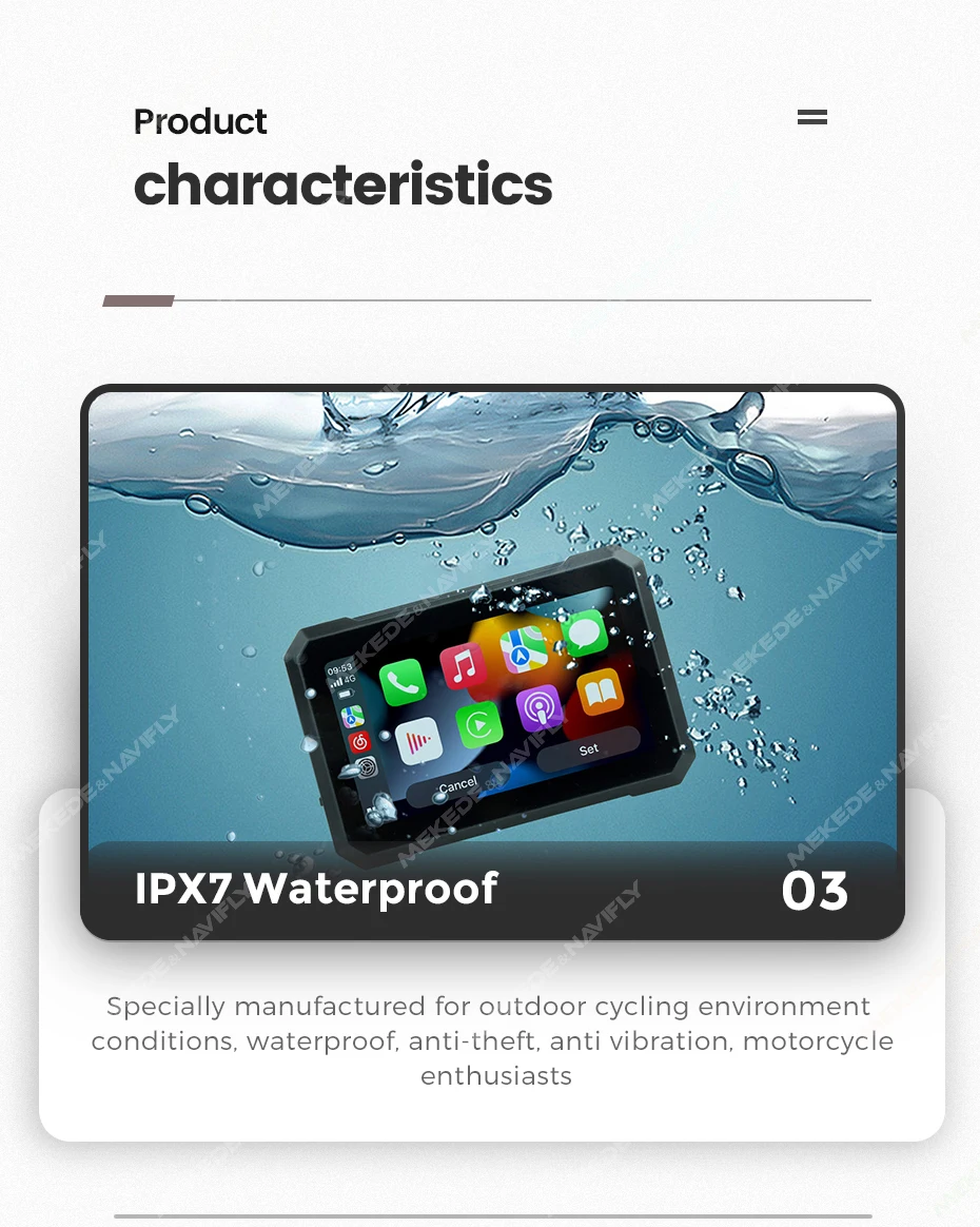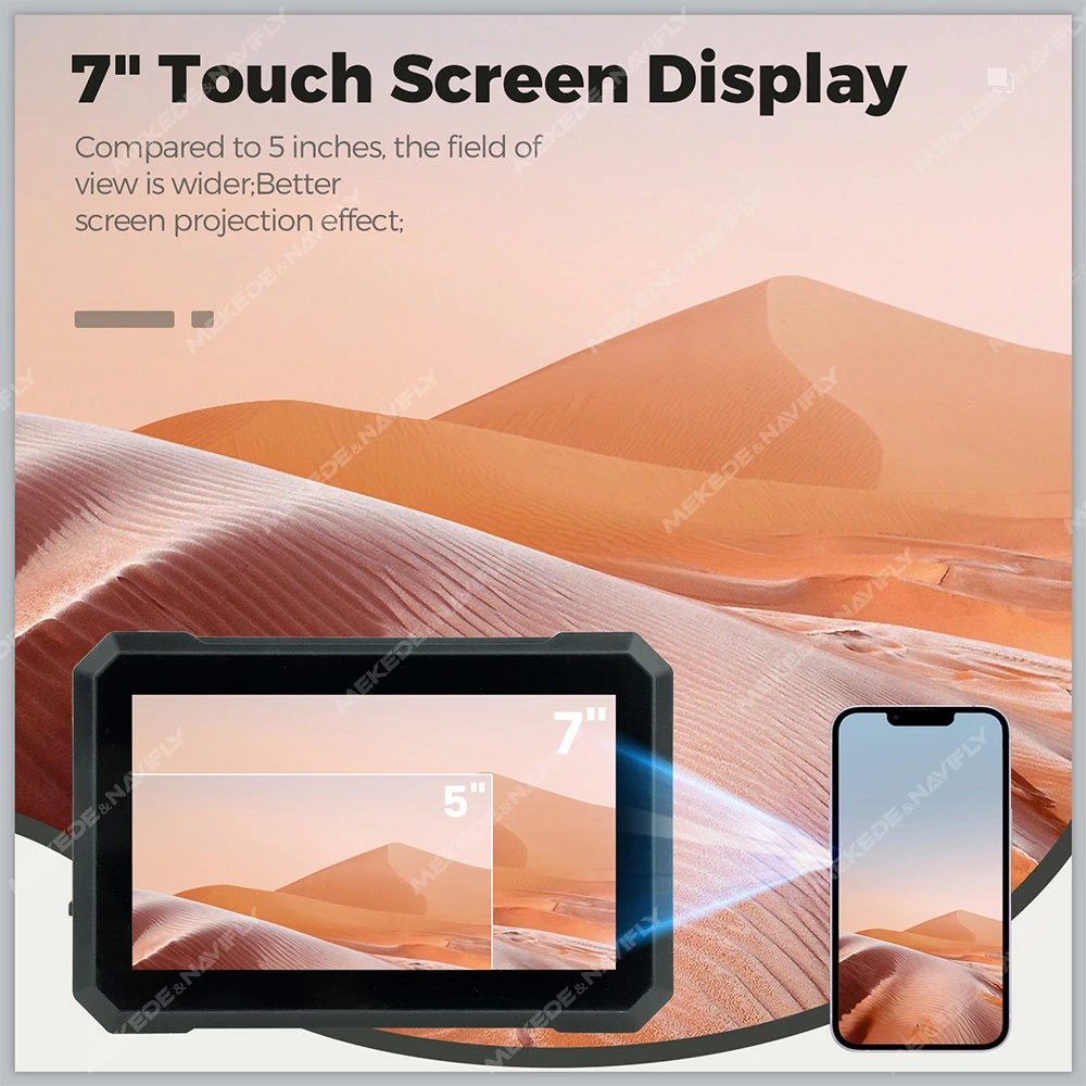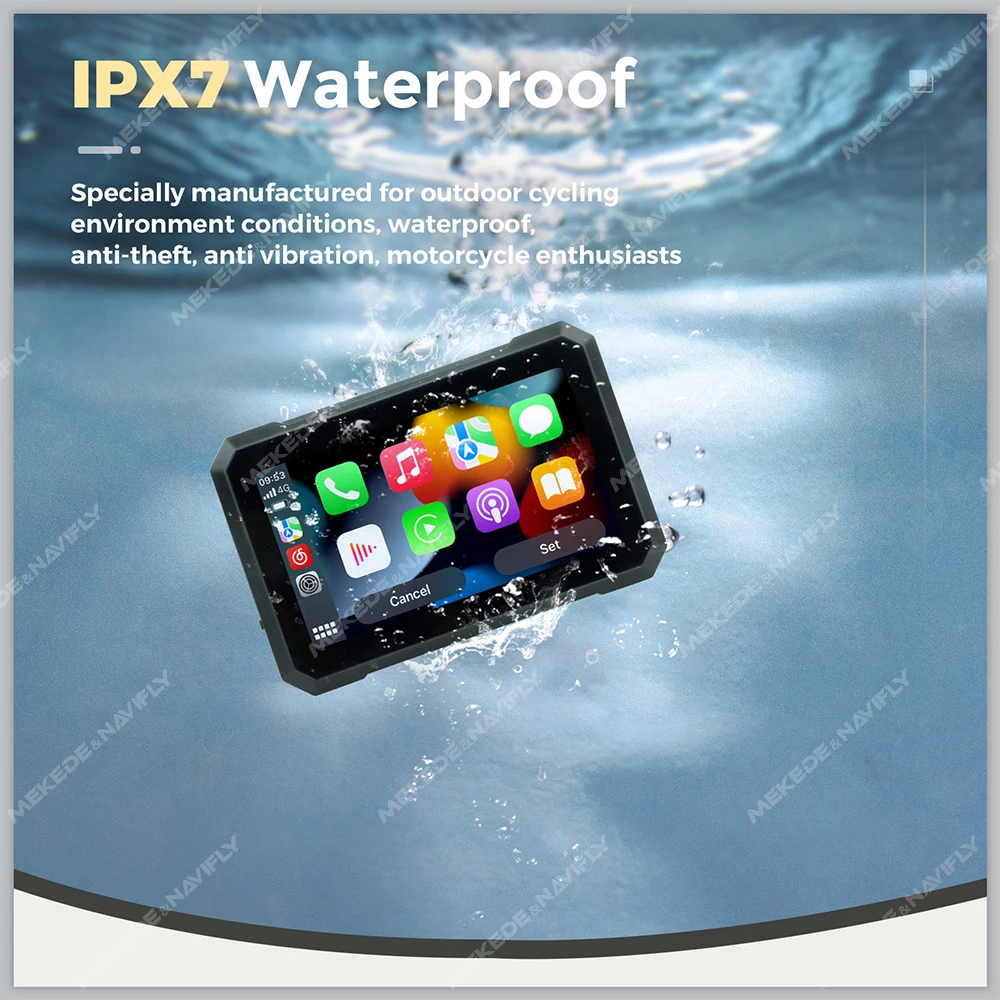 Navifly 7-inch Motorcycle GPS Navigation IPX7 Waterproof Wireless Carplay Android Auto Display Screen Portable Motobike Monitor