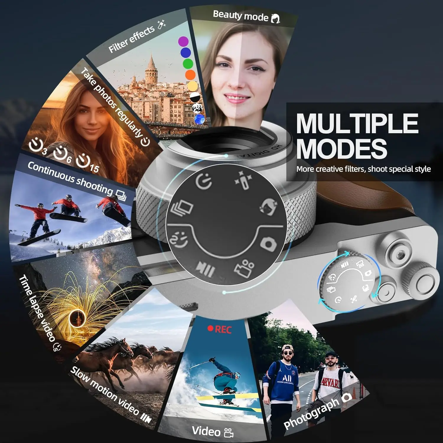 【Multifunctional Video/Vlogging Camera for YouTube】:This camera has multiple functions, not only for taking photos and recording videos, but also as a web camera, which is very convenient. As long as you rotate the mode dial, you can choose the mode you want, including continuous shooting, slow action, delayed shooting, beauty photography, and more. And there is a fill light, which makes shooting clearer in the dark