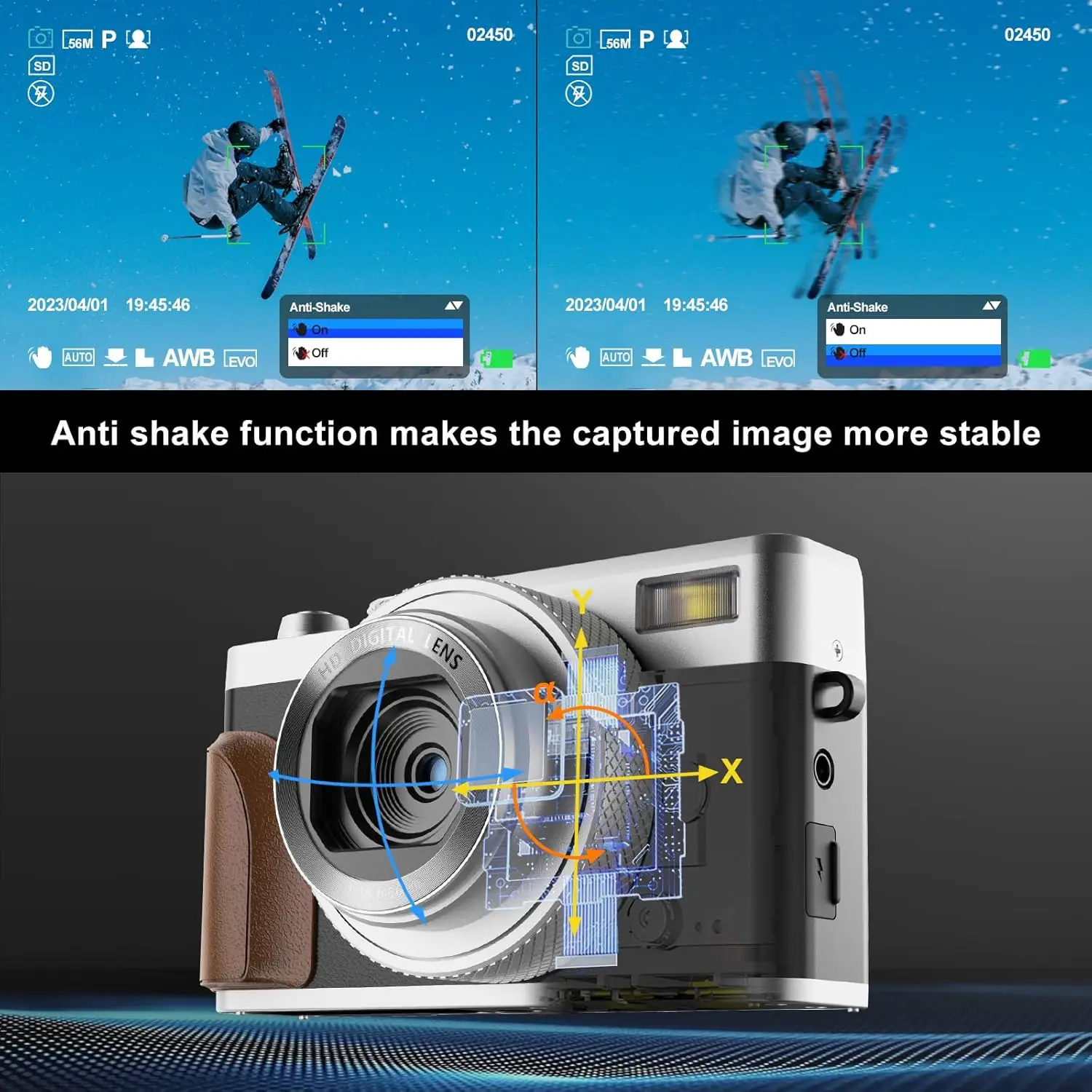 【56MP Digital Camera with Flip Screen】:The digital camera uses the latest CMOS measurement system to capture high-definition 4K videos and 56MP photos, without the need for complex manual settings, while automatically providing natural color images. Cameras for photography has a 3-inch touch screen and can rotate 180 degrees, allowing you to see what’s being recorded or view it while taking a vlog from any angle.