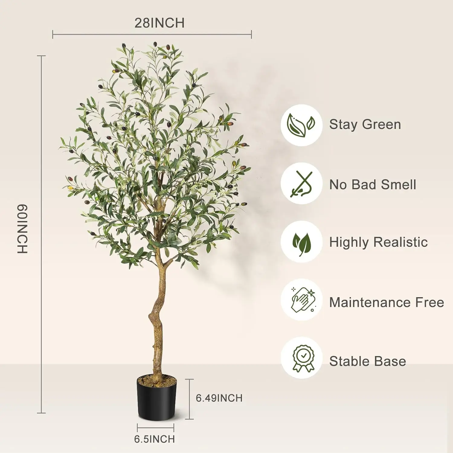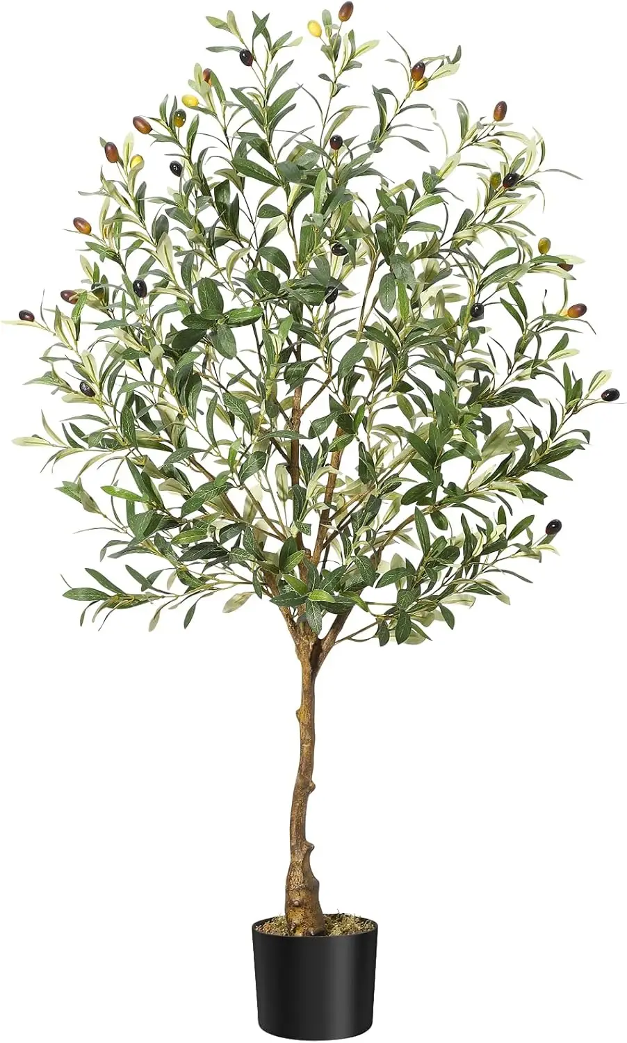 Olive Trees Artificial Indoor, Tall Olive Tree Plants, Faux Olive Tree with Realistic Trunk, Leaves, Fruits for Home Decor