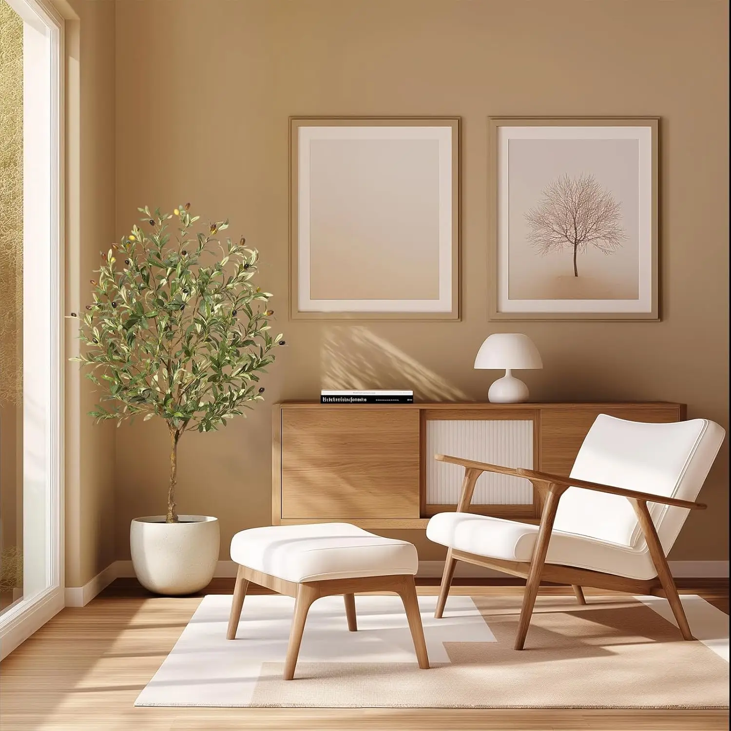 【Highly Realistic Design】GarveeHome faux olive tree features realistic branches and leaves, using fine craftsmanship to create an artificial olive tree that mimics the foliage of a natural olive tree, with each leaf and fruit carefully sculpted. Makes this faux tree look like a artwork. The tree comes with a non-decorative pot, recommend you place this tree into a decorative pot, which will enhance the overall decorative effect.