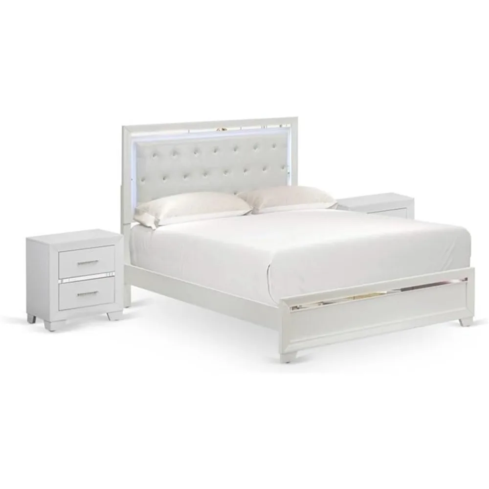 MODERN BEDROOM SET: Our 3-Piece wood bedroom set with a Led bed frame queen and 2 modern wooden nightstands. This elegant bed frame with a wooden headboard brings an exclusive, luxurious appeal to any bedroom. This gorgeous bedroom set is a shining example of modern design and forward thinking.