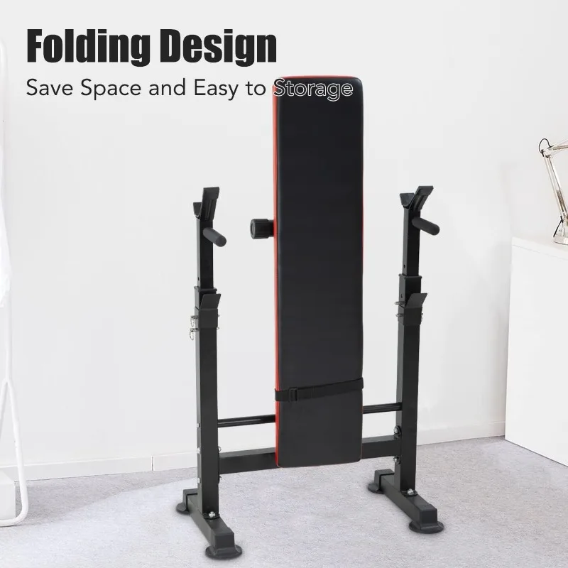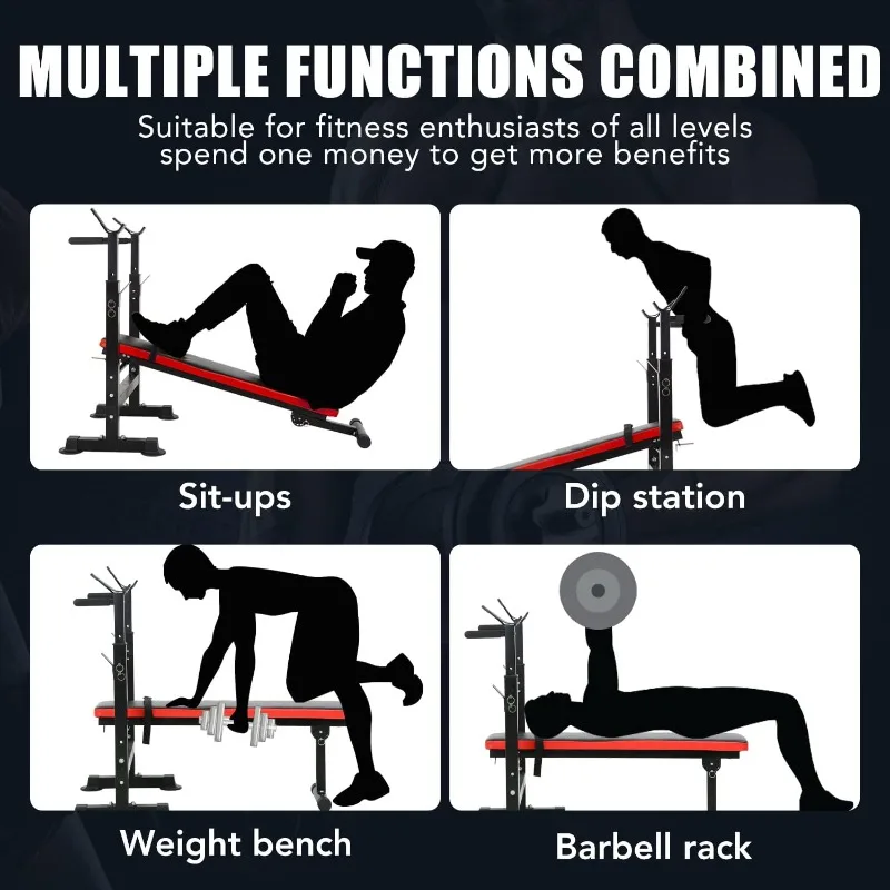PayLessHere Adjustable Weight Bench with Barbell Rack,Bench Press Folding Multi-Function Workout Bench with Dip Station