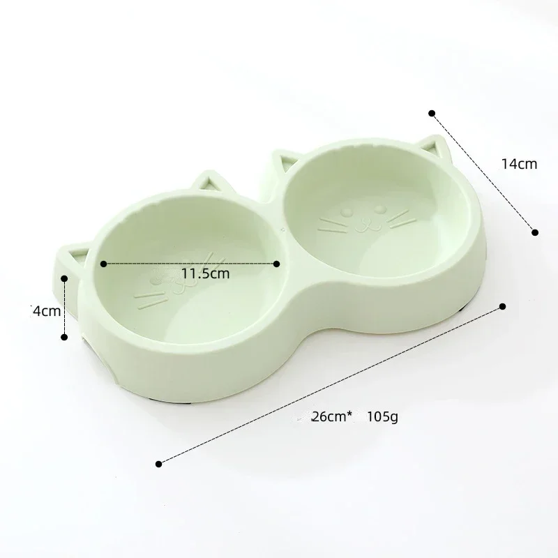 Pet Cat Double Bowl Eco-friendly PP Material Cartoon Cat Face Shape Food Water Feeding Bowl Non-slip Puppy Cat Feeder Supplies