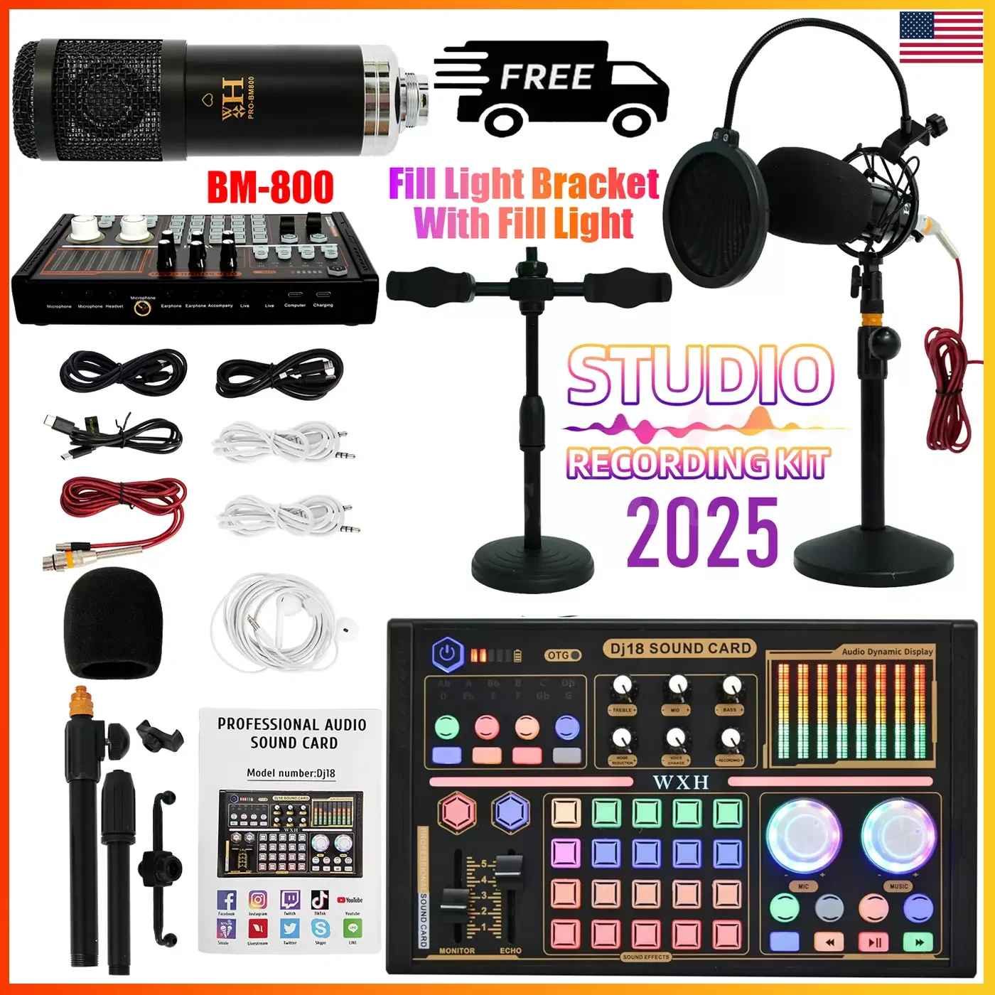 Podcast Mixer Equipment Microphone Bundle Kit,BM-800 Podcast Microphone Set 2025