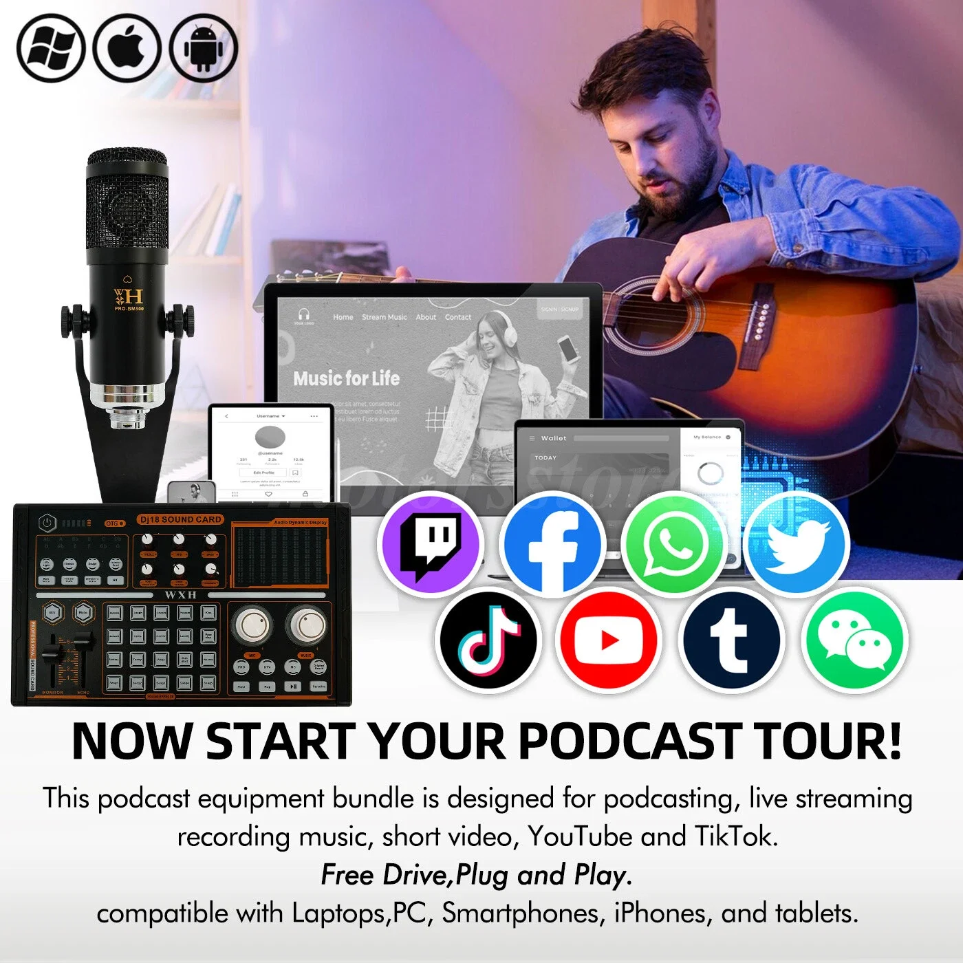 【Cross-Platform Compatibility for Versatility】Compatible with mobile phones, computers, tablets, and major gaming consoles, this kit supports popular systems like Apple iOS and Android. Whether you want to sing, chat, record, or stream, this microphone set is ready to capture every special moment in any scenario—from home entertainment and office streaming to professional broadcasting and gaming competitions.