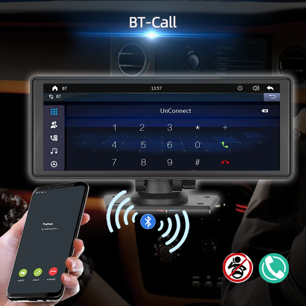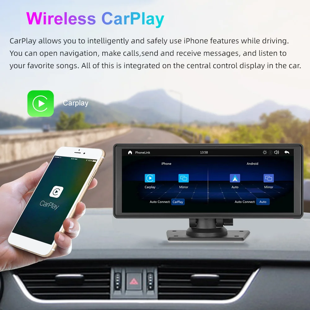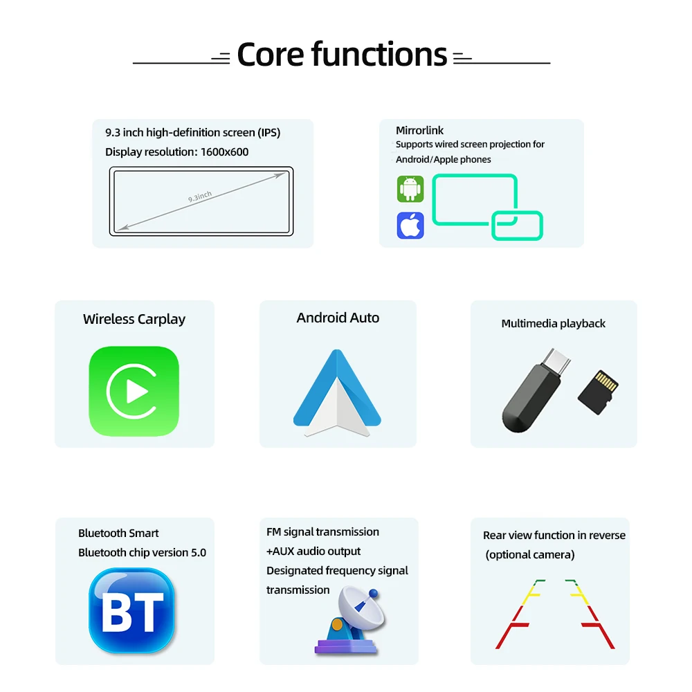 ‌Portable Car Monitor Android Auto Radio Wireless CarPlay ‌9.3 Inch Car Stereo FM Transmitter Plug and Play Installation