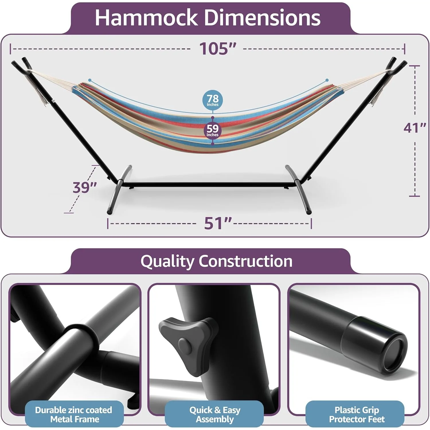 This stylish double hammock swing and space-saving stand can be quickly set up and is easy to relocate – It has five adjustable height options so you can choose your perfect position