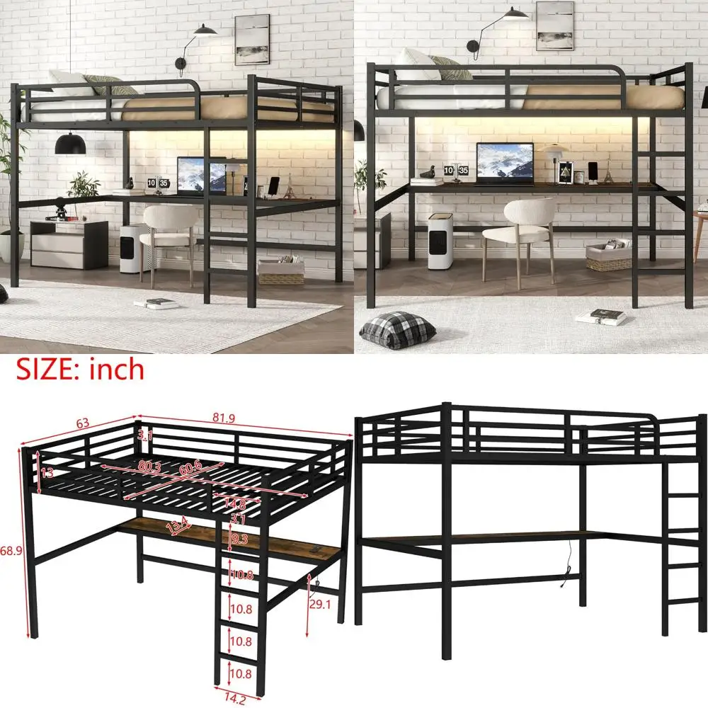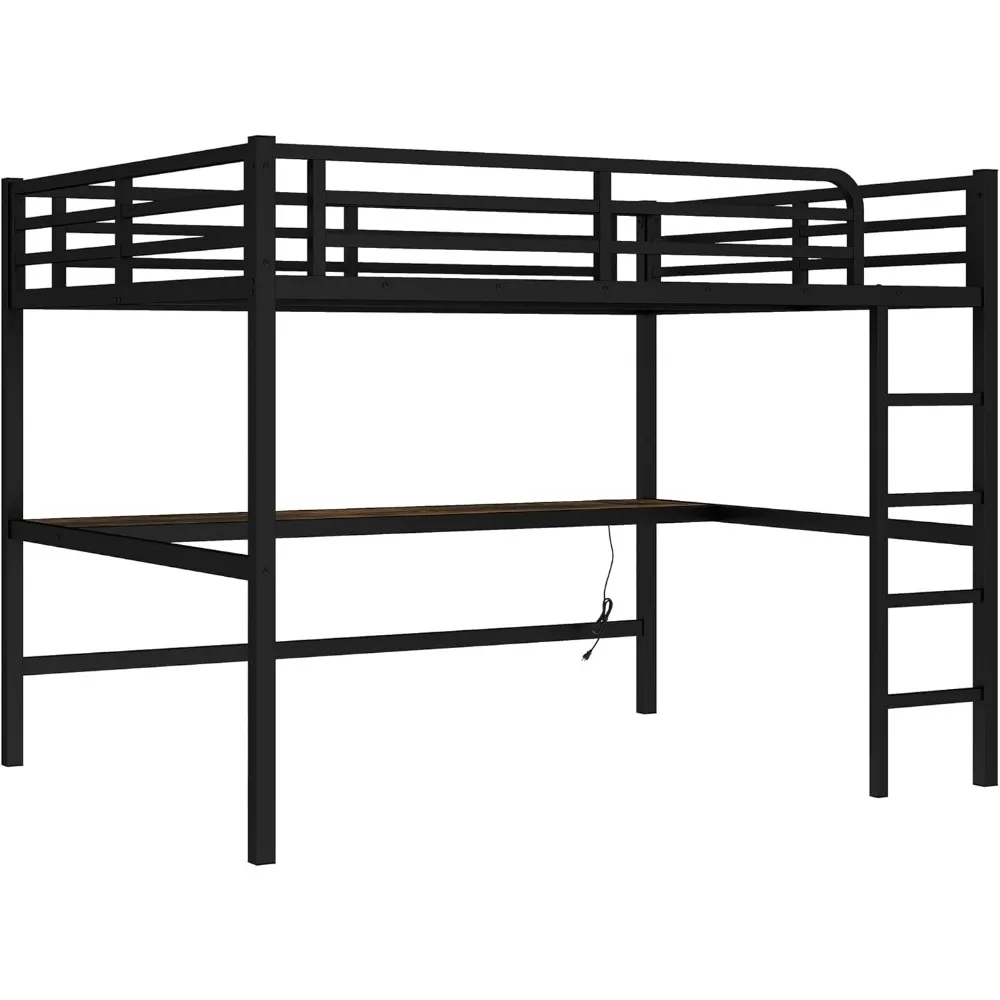 queen size bellemave loft bed with desk, suitable for adults, kids, and teens, metal frame, black