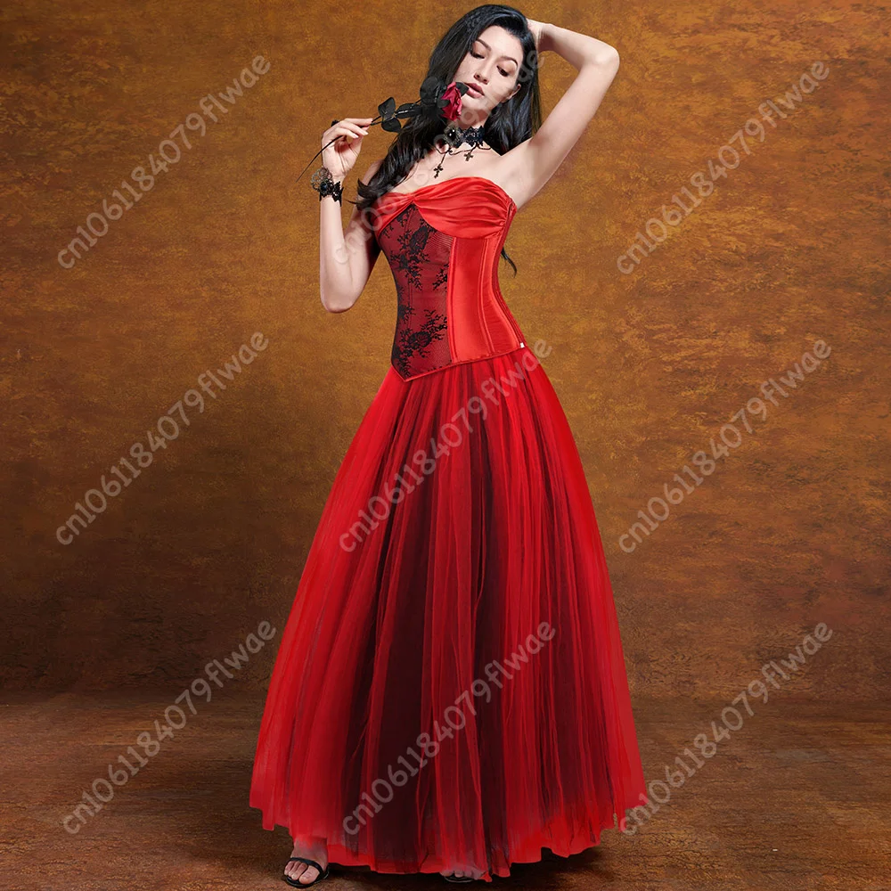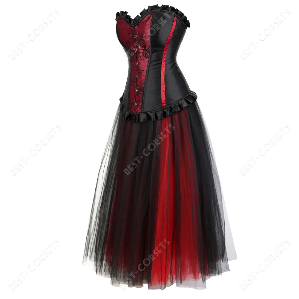 Red Corset With Dress Sexy Corset Dresses for Women Plus Size Gothic Corset Skirt Party Evening Mesh Maxi Dress with Corset
