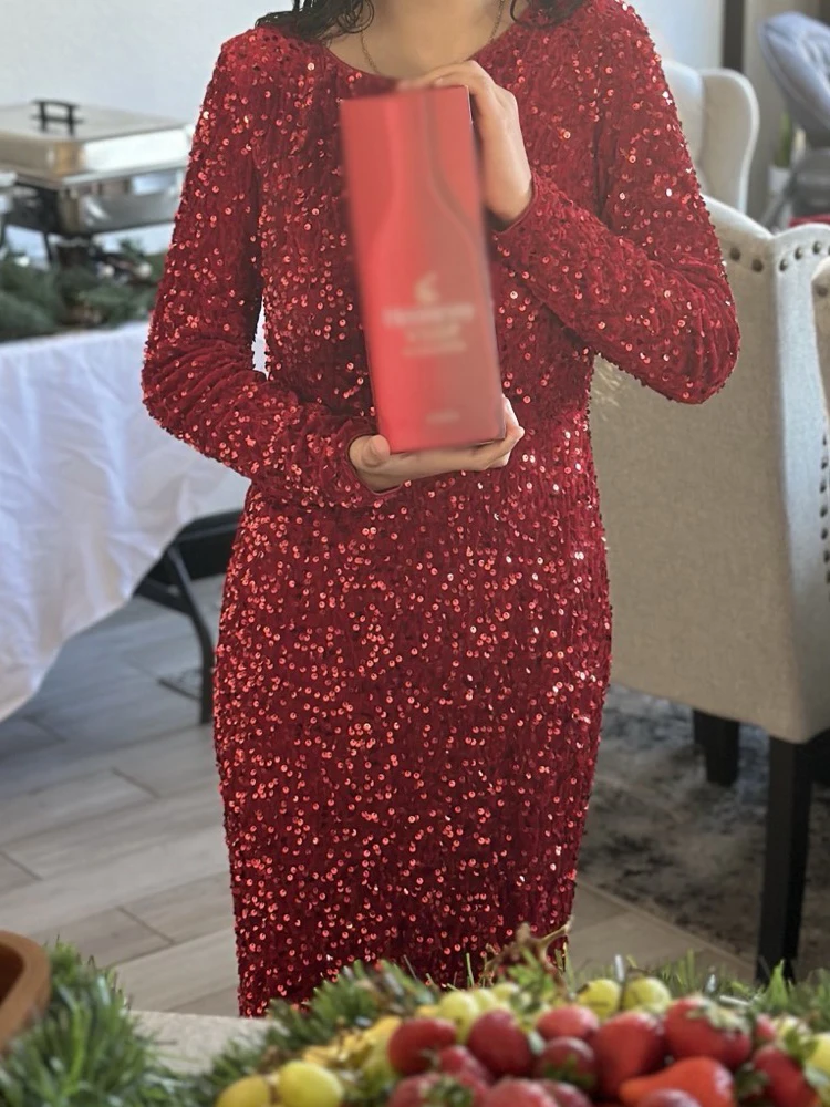 100% brand new and high quality[ Item ] Elegant dresses for women[ Style ] Women’s long sleeve[ Design ] Sexy festival outfit[ Color ] Black, Blue, Dark Green[ Size ] S,M,L,XL[ Material ] Sequin + Velvet[ Package ] 1 PC Dress