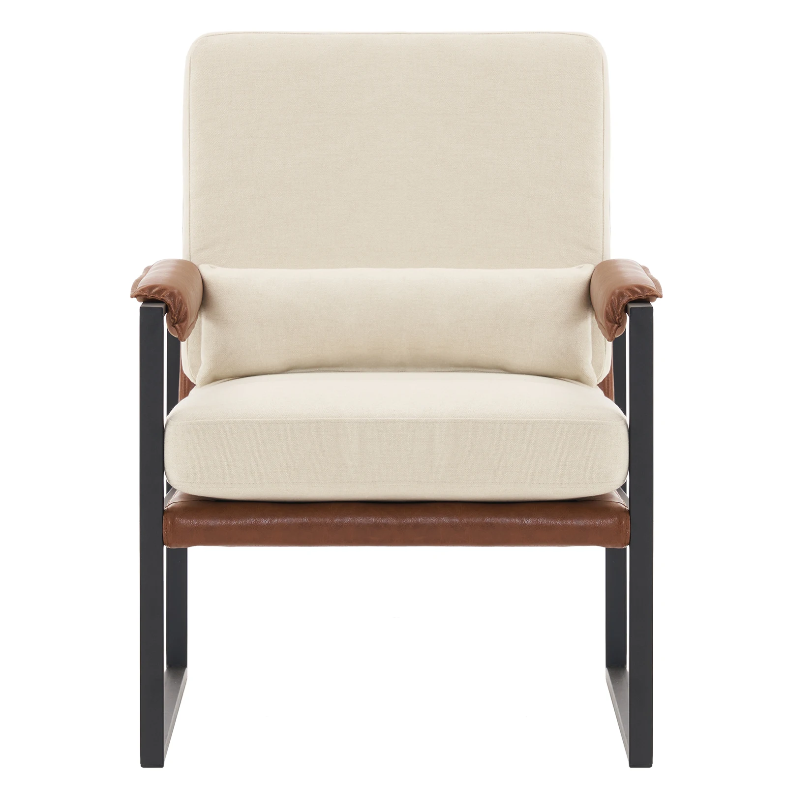 Single Iron Frame Chair Soft Cover Beige Brown Honeycomb Leather Armrest Frame Indoor Leisure Chair