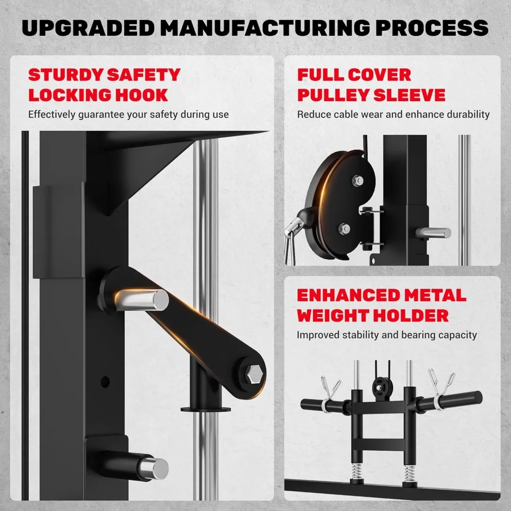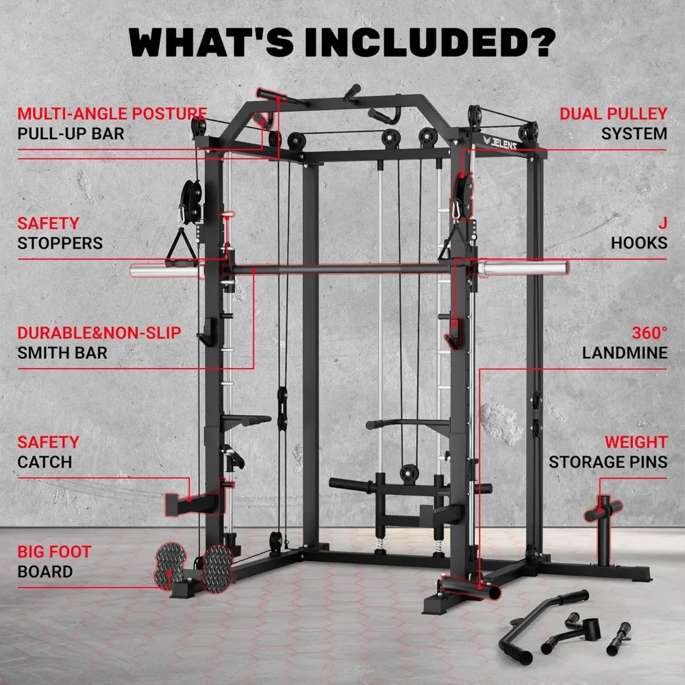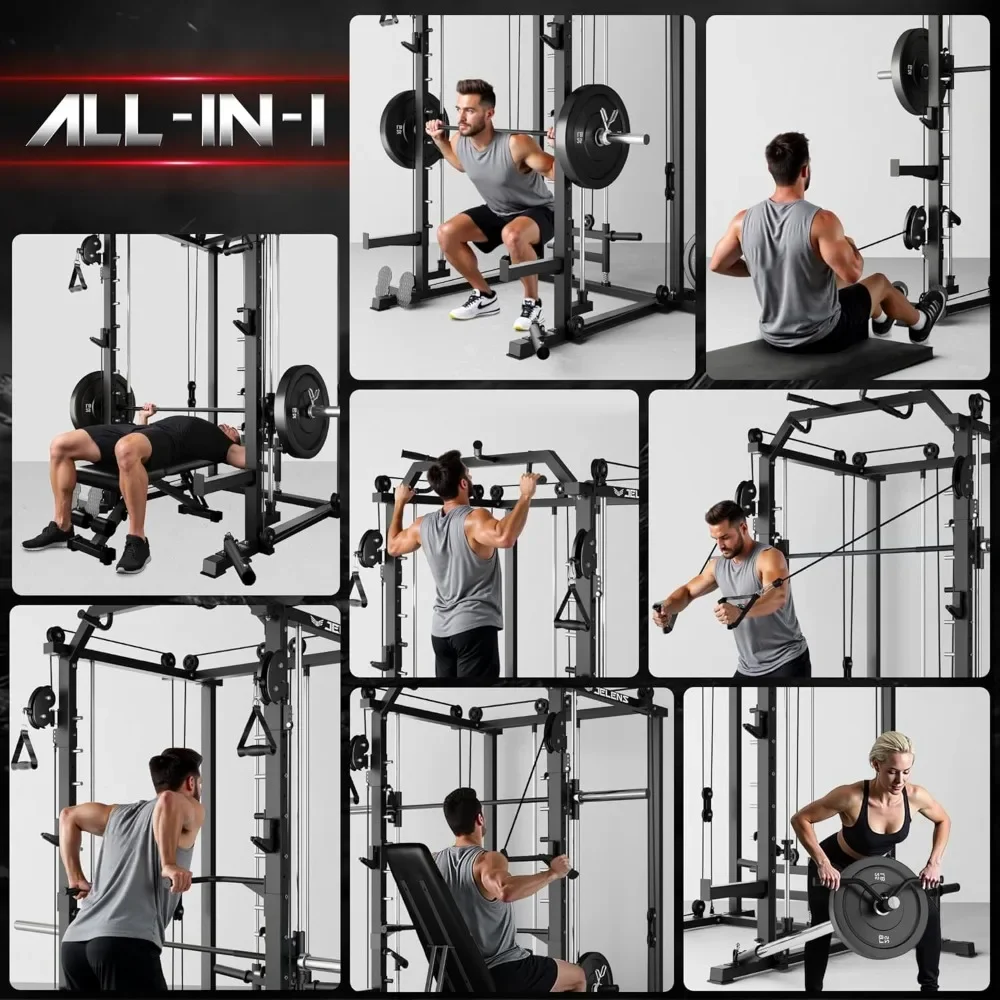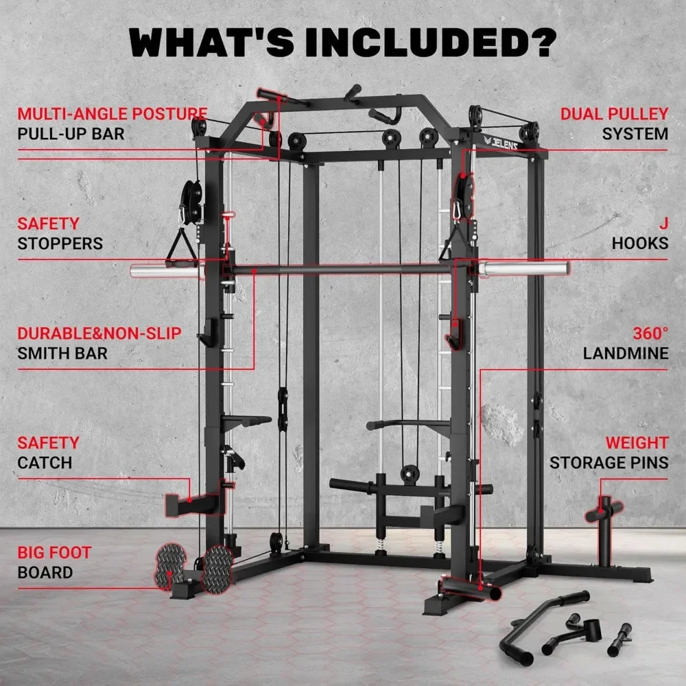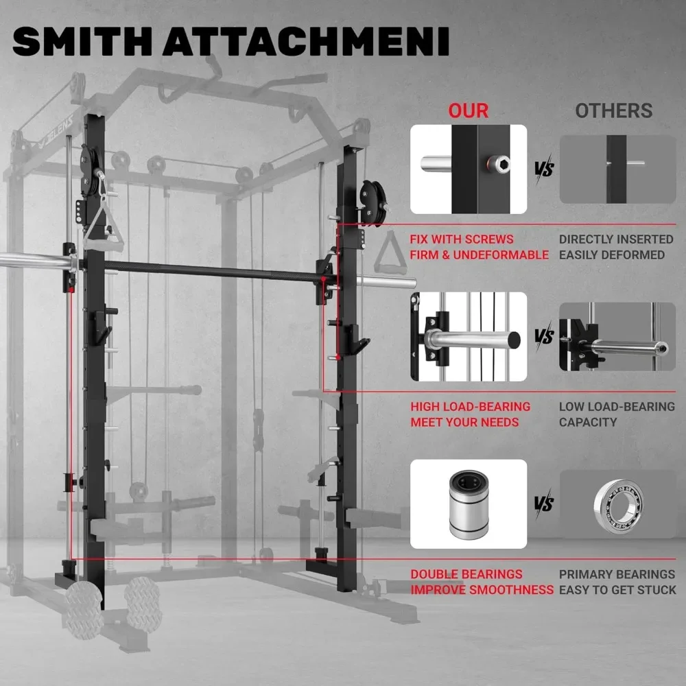 Smith Machine, 2000LBS M11 Multi-Function Squat Rack Power Cage with Cable Crossover System and Smith Bar, All-in-One LAT