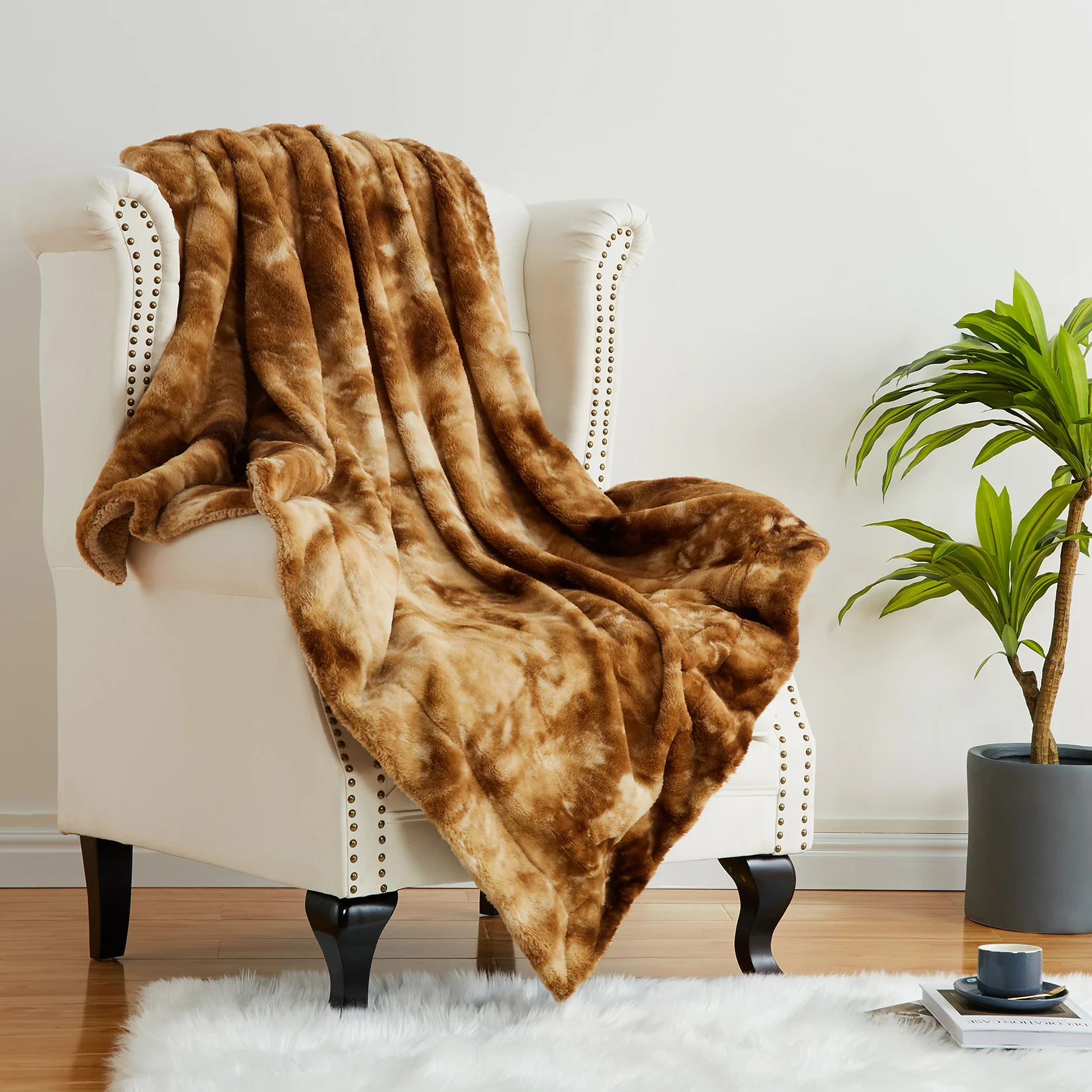Tie-dye Imitation Rabbit Fur Blanket Luxury Fluffy Cozy Comfortable Warm Throw Blanket for Winter Decor Home Sofa Bedspread