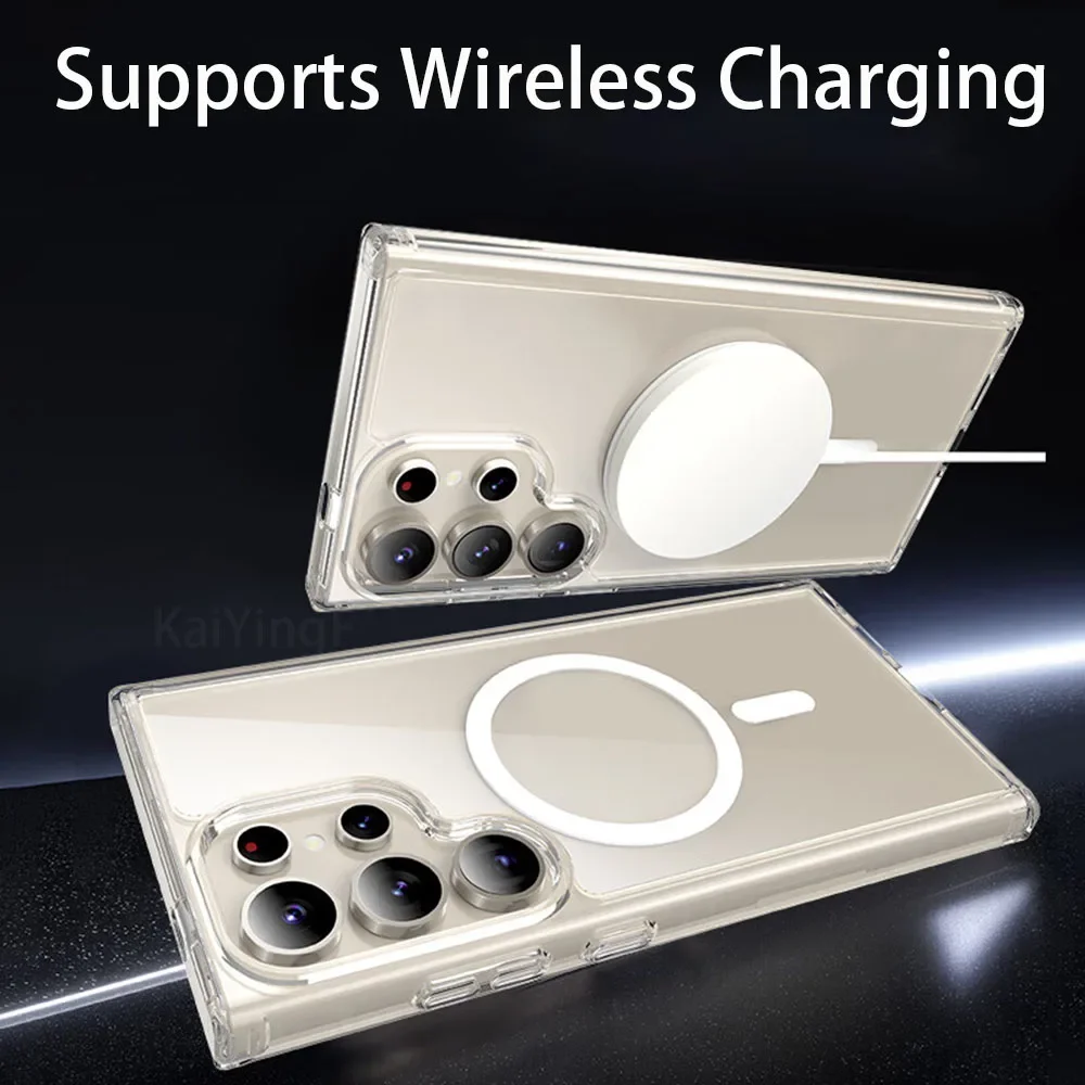 Transparent For Magsafe Case For Samsung Galaxy S25 S24 S23 FE S22 S21 Ultra Plus Wireless Charging Shockproof Clear Cover