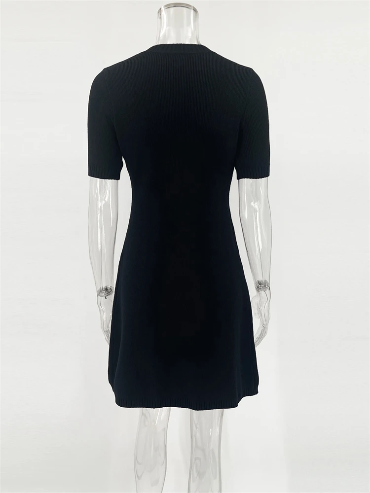 Trendix Elegant Knit Mini Dress Women Street Slim High Waist Short Sleeve Rib Sweater Dresses Vacation Bodycon Knitwear Dress