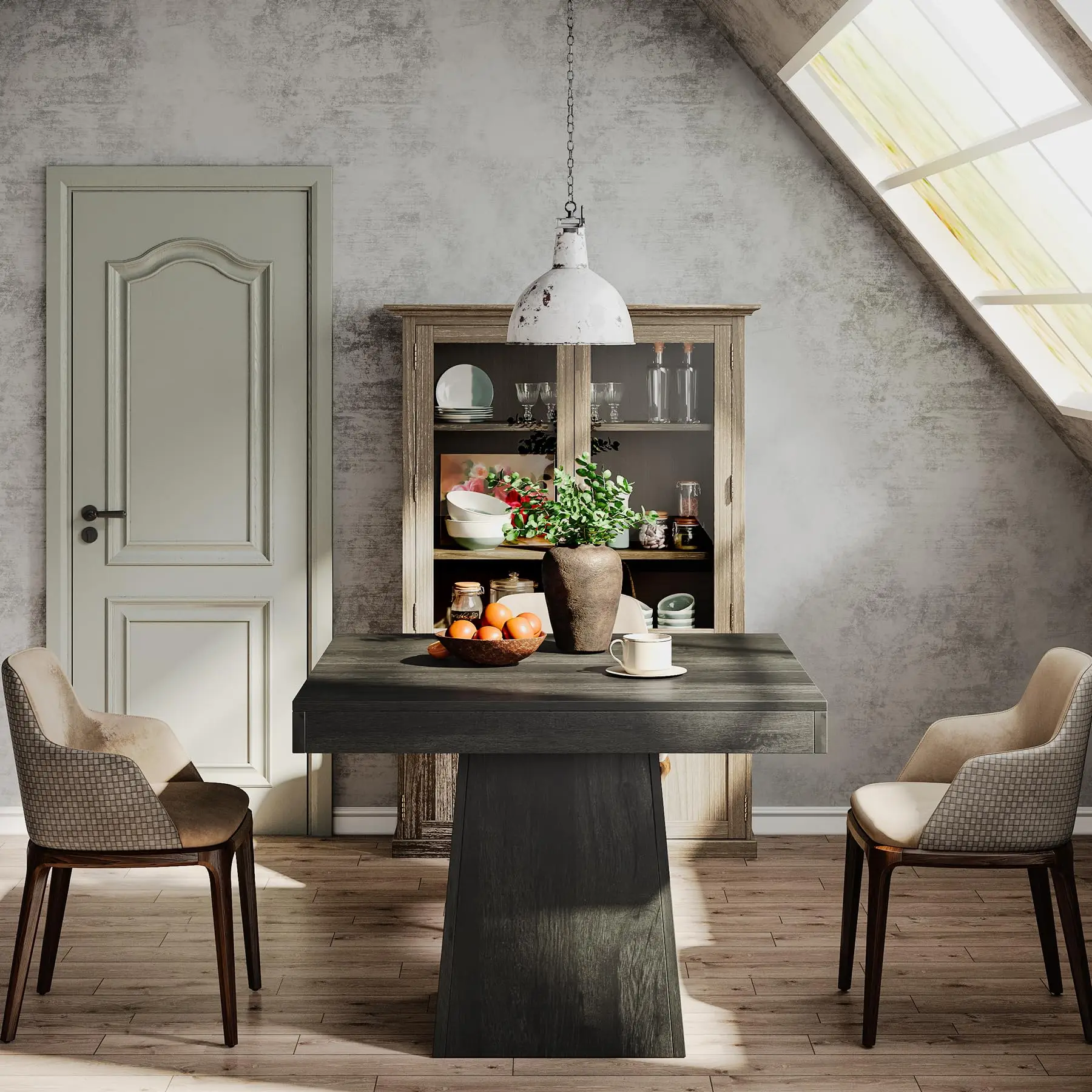 [Rustic Farmhouse Design]: Finished in a timeless grey wood grain, this square dining table brings a warm, cozy, and charming appeal to your space. It perfectly captures the relaxed feel of the countryside, making your home feel more welcoming. This design is not just beautiful, but also versatile, blending seamlessly with modern or traditional decor.