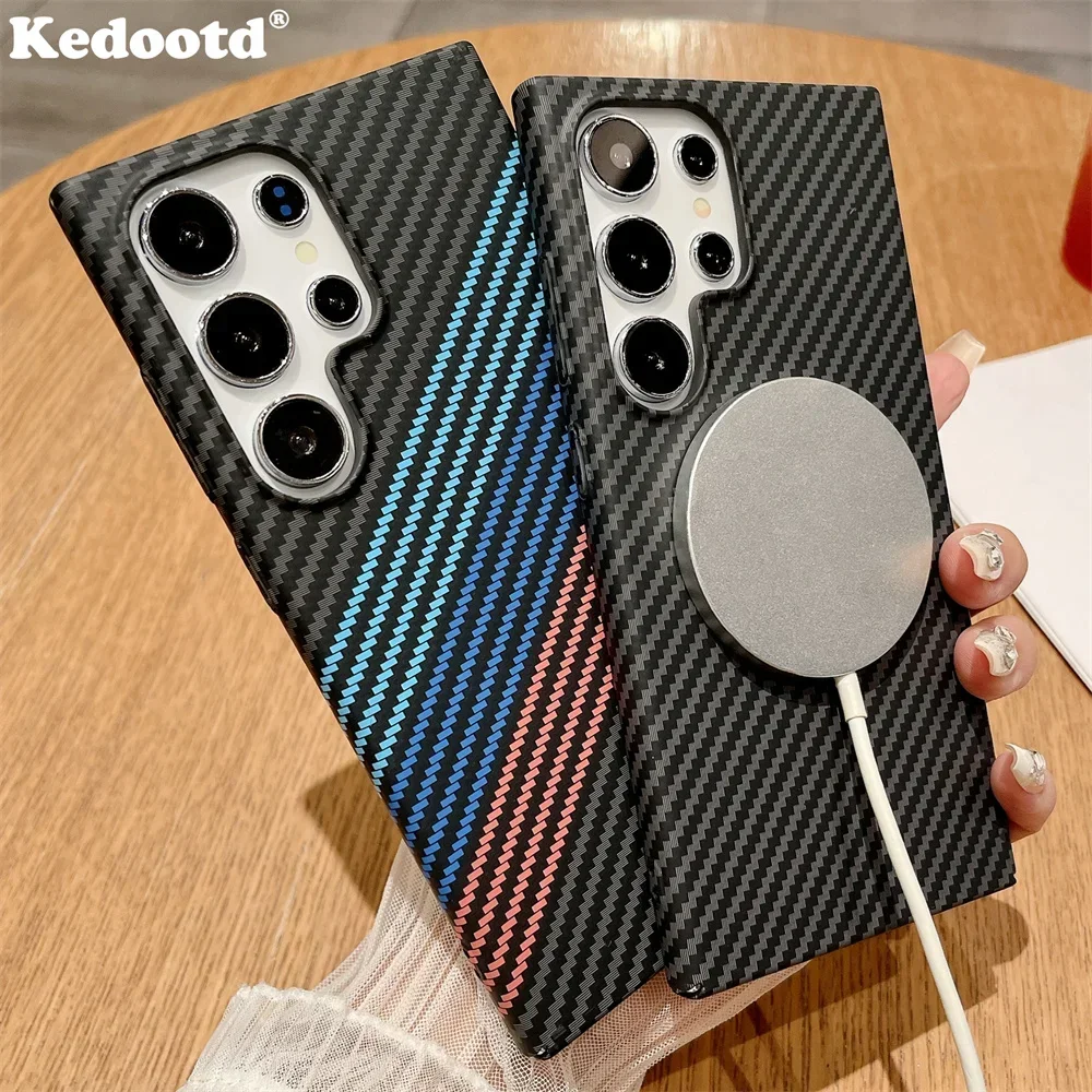 Ultra Thin Carbon Fiber Texture Armor Magnetic For Magsafe Case For Samsung S25 S24 S23 S22 Note 20 Ultra 10 Plus Hard PC Cover